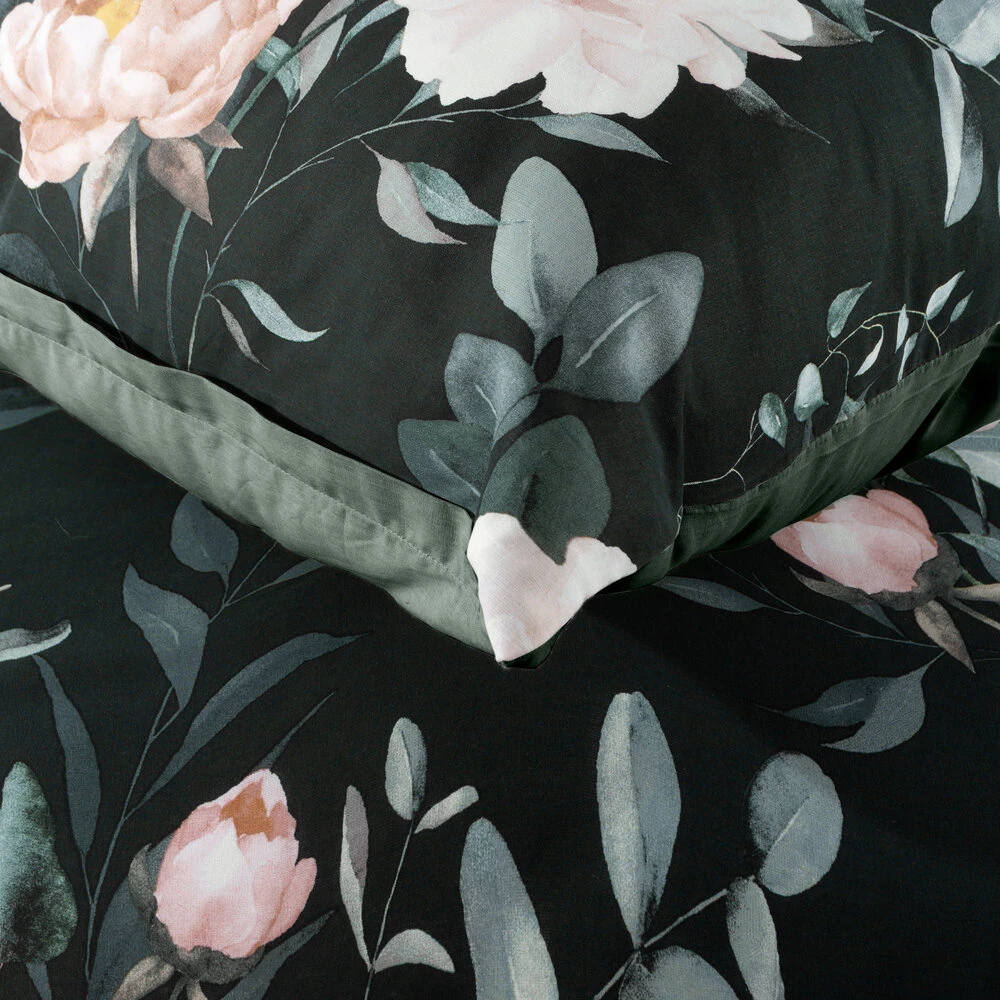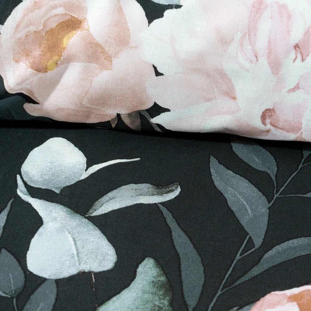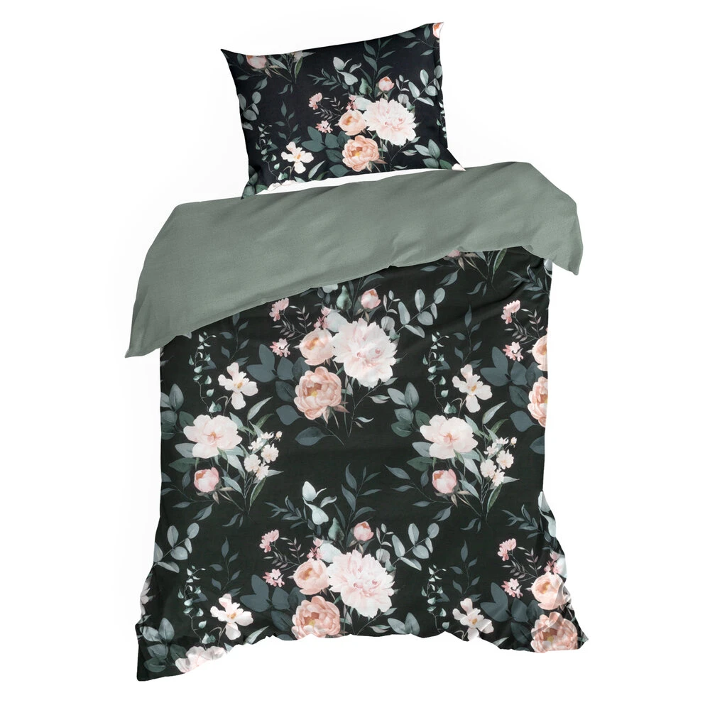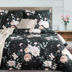 Komplet pościeli bawełnianej z kwiatowym nadrukiem szerokość: 140 cm, długość: 200 cm, kolor: czarny, Gramatura: 105 GSM, Skład: 100% bawełna