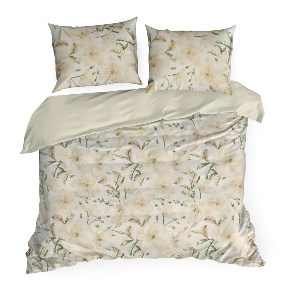 Komplet pościeli bawełnianej z nadrukiem szerokość: 140 cm, długość: 200 cm, kolor: beżowy, Gramatura: 105 GSM, Skład: 100% bawełna