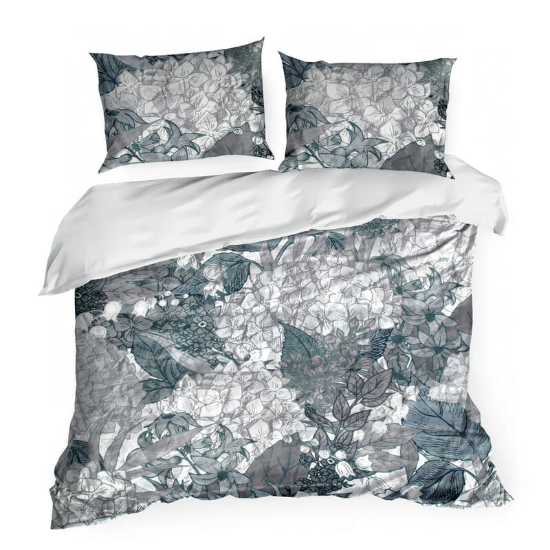 Komplet pościeli satynowej, kreszowanej, z nadrukiem szerokość: 220 cm, długość: 200 cm, kolor: stalowy, Gramatura: TYŁ 120 GSM/ PRZÓD 90 GSM GSM, Skład: 50% bawełna, 50% poliester