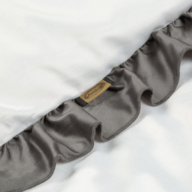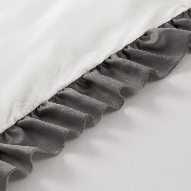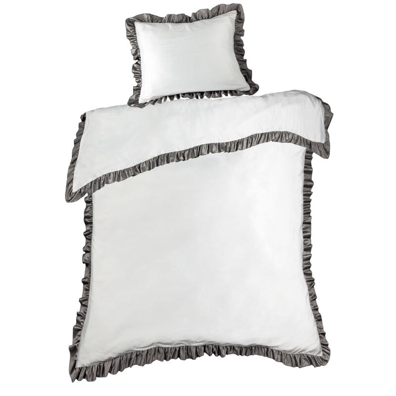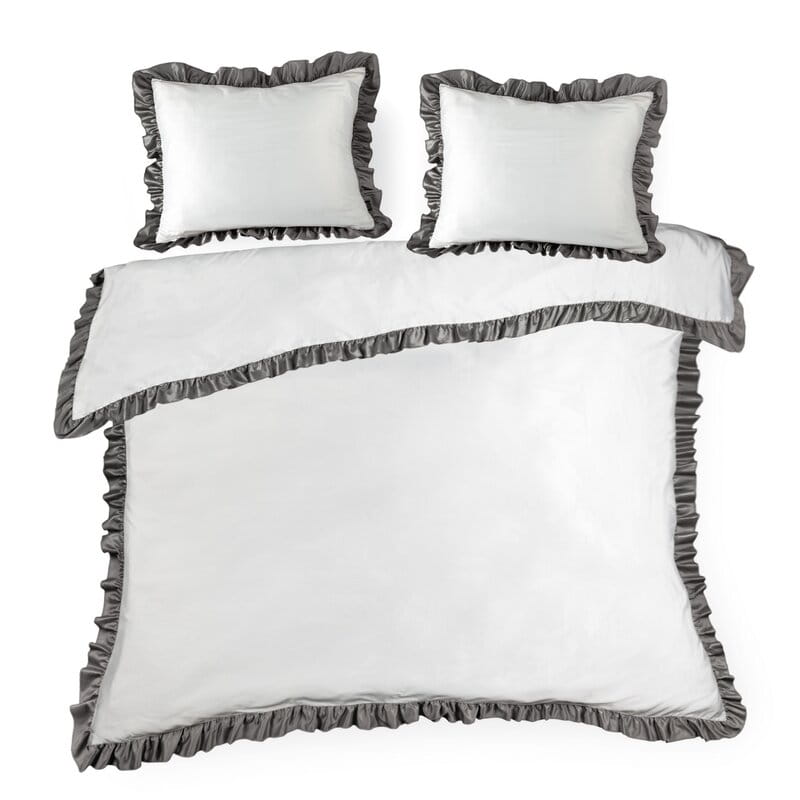 Komplet pościeli z bawełną, zdobionej falbanką szerokość: 220 cm, długość: 200 cm, kolor: biały, Gramatura: 125 GSM, Skład: 55% bawełna, 45% poliester