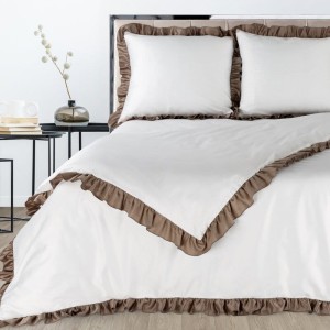 Komplet pościeli z bawełną, zdobionej falbanką szerokość: 220 cm, długość: 200 cm, kolor: biały, Gramatura: 125 GSM, Skład: 55% bawełna, 45% poliester