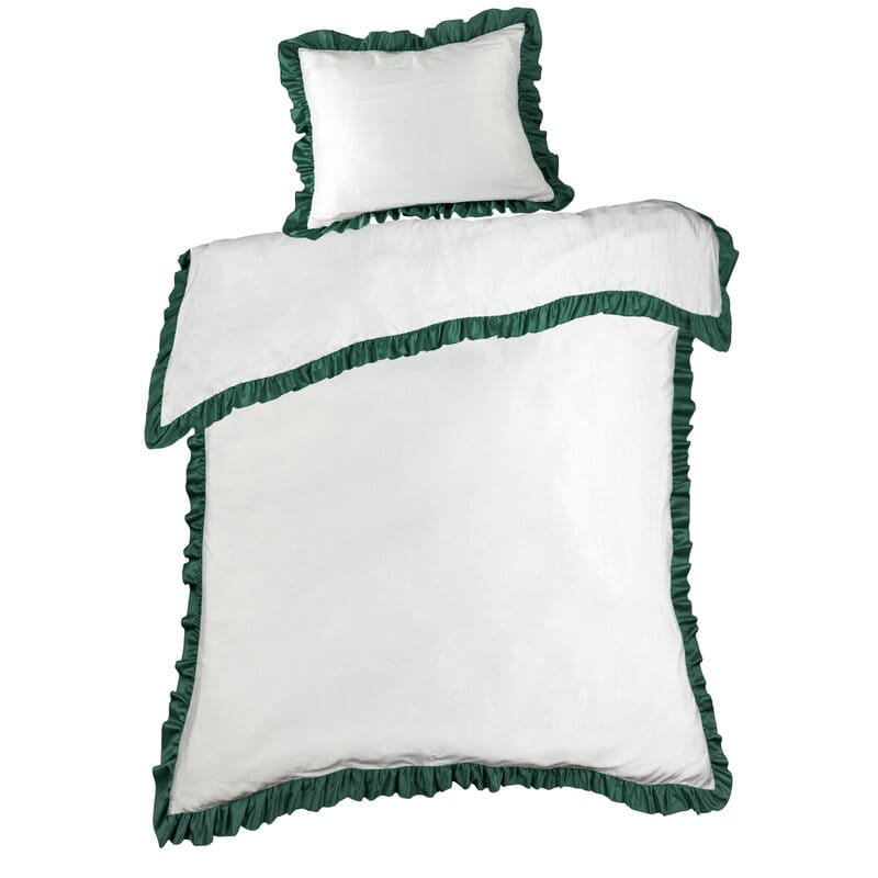 Komplet pościeli z bawełną, zdobionej falbanką szerokość: 220 cm, długość: 200 cm, kolor: biały, Gramatura: 125 GSM, Skład: 55% bawełna, 45% poliester