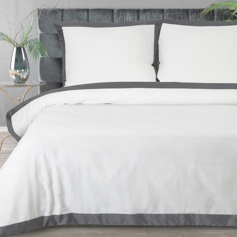 Pościel satynowa z bawełną z ozdobną kantą w kontrastowym odcieniu szerokość: 160 cm, długość: 200 cm, kolor: biały, Gramatura: 125 GSM, Skład: 55% bawełna, 45% poliester