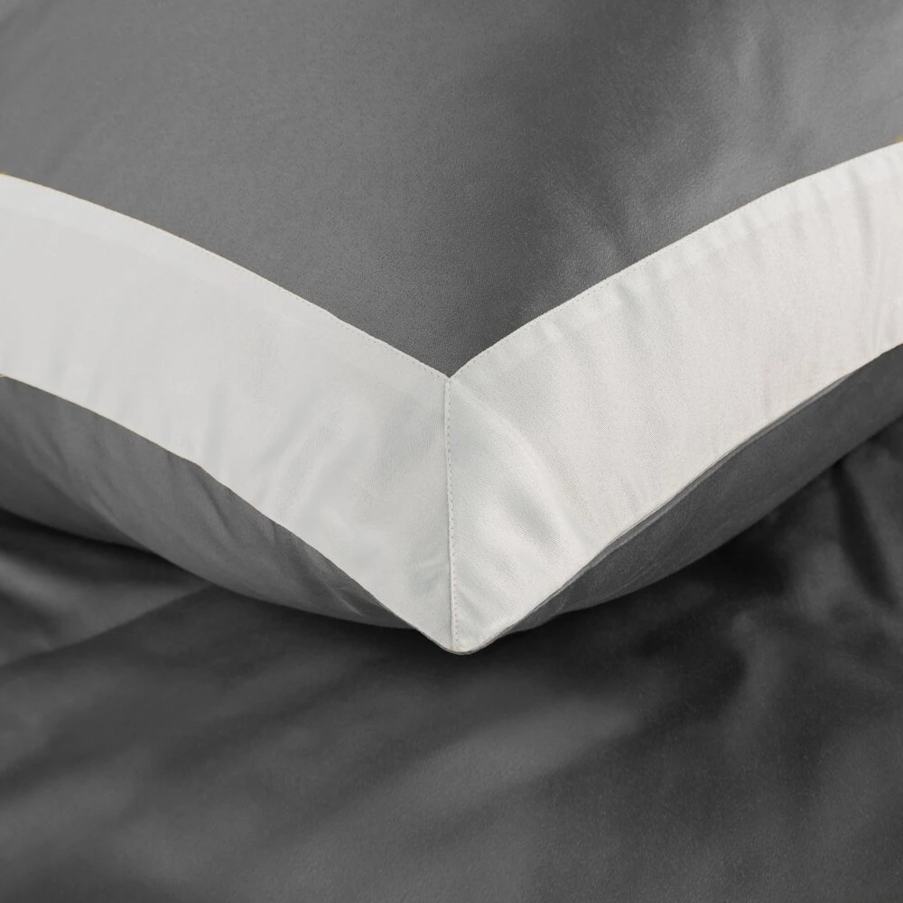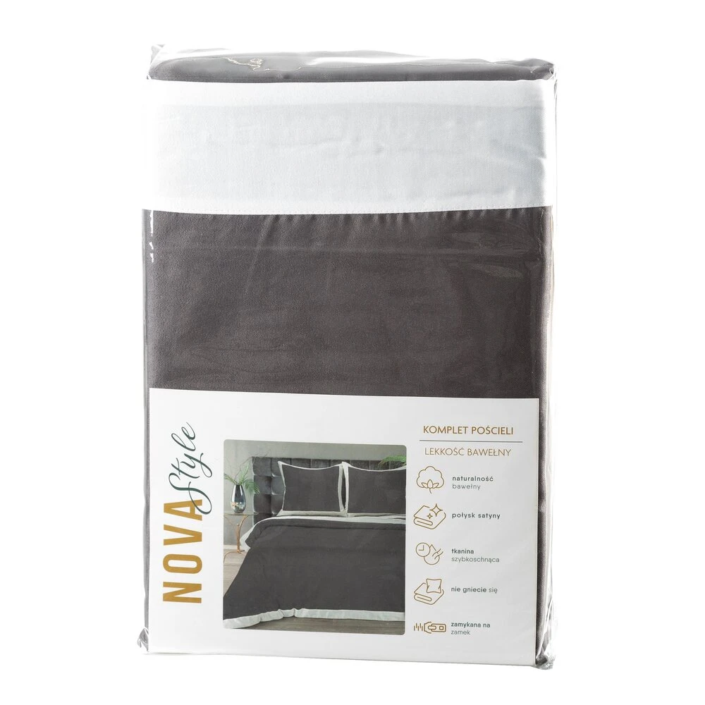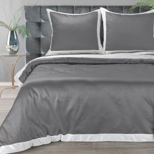 Pościel satynowa z bawełną z ozdobną kantą w kontrastowym odcieniu szerokość: 160 cm, długość: 200 cm, kolor: popielaty, Gramatura: 125 GSM, Skład: 55% bawełna, 45% poliester