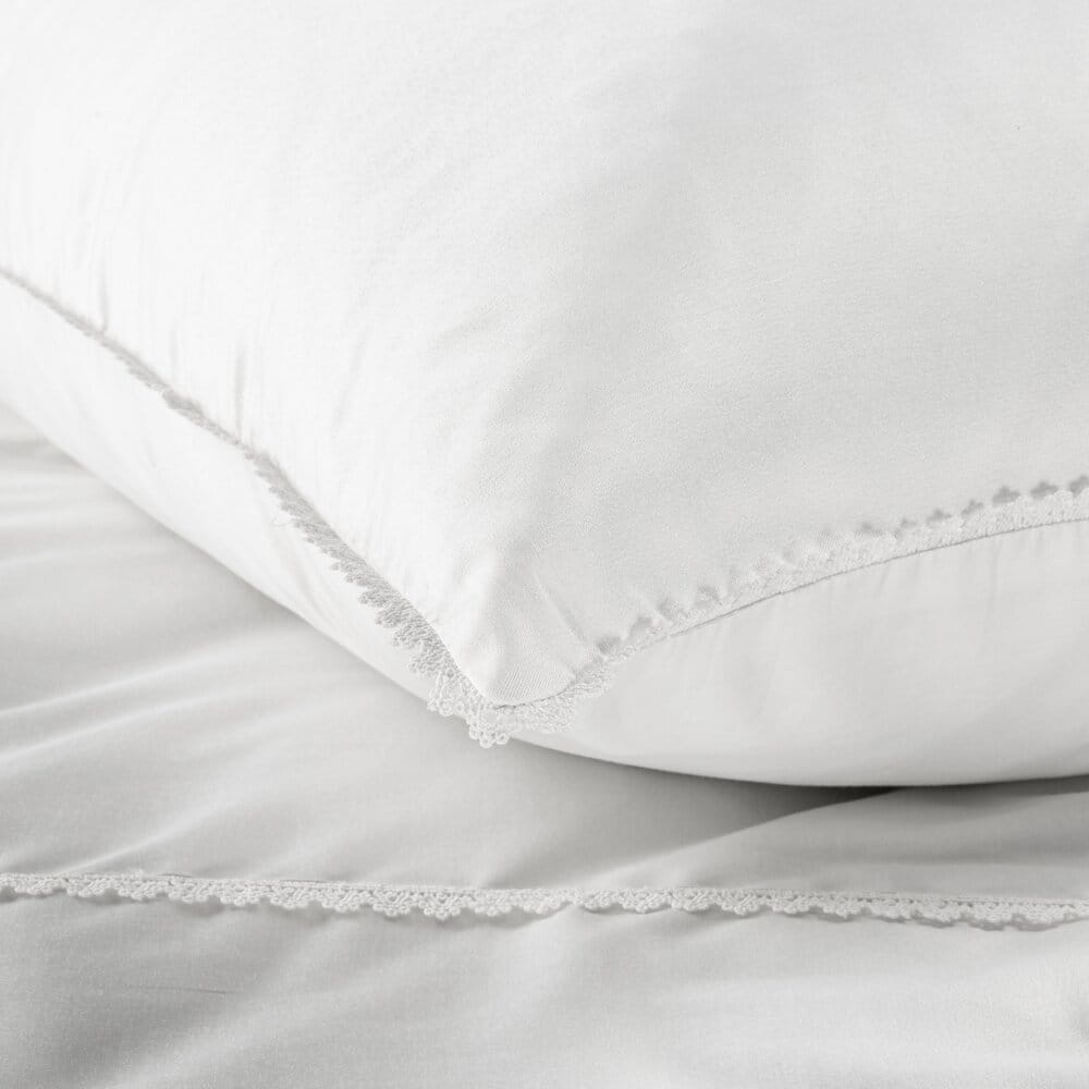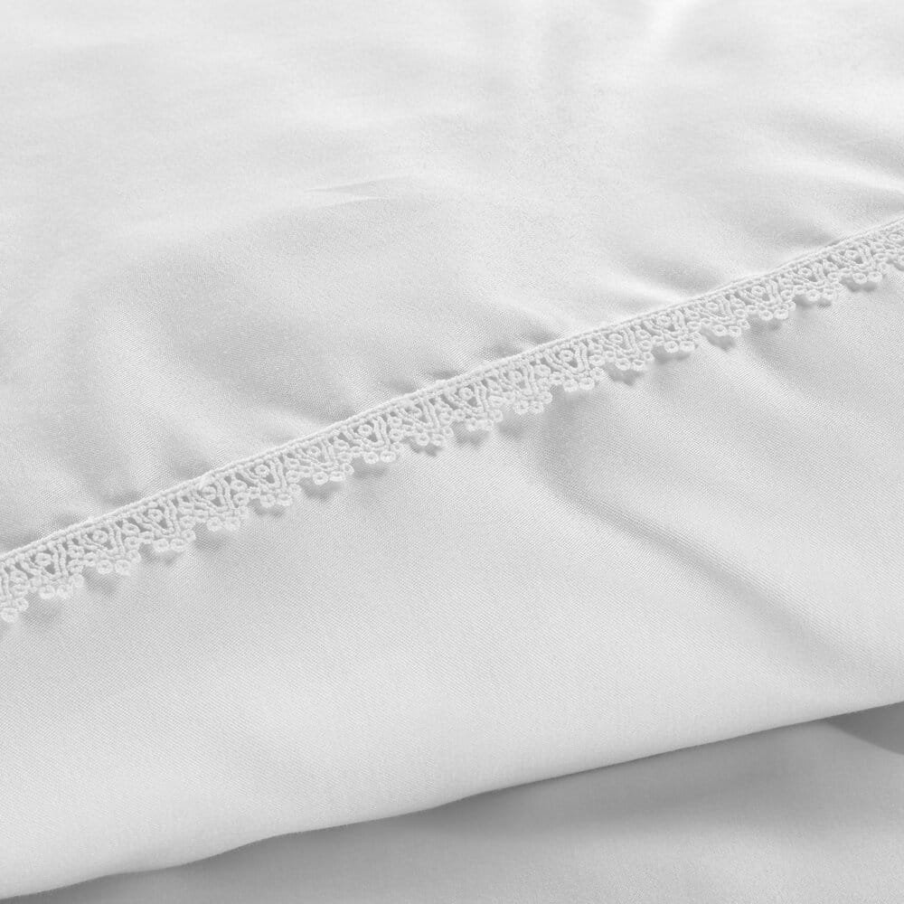 Pościel o splocie satynowym , zdobiona koronką szerokość: 160 cm, długość: 200 cm, kolor: biały, Gramatura: 125 GSM, Skład: 55% bawełna, 45% poliester