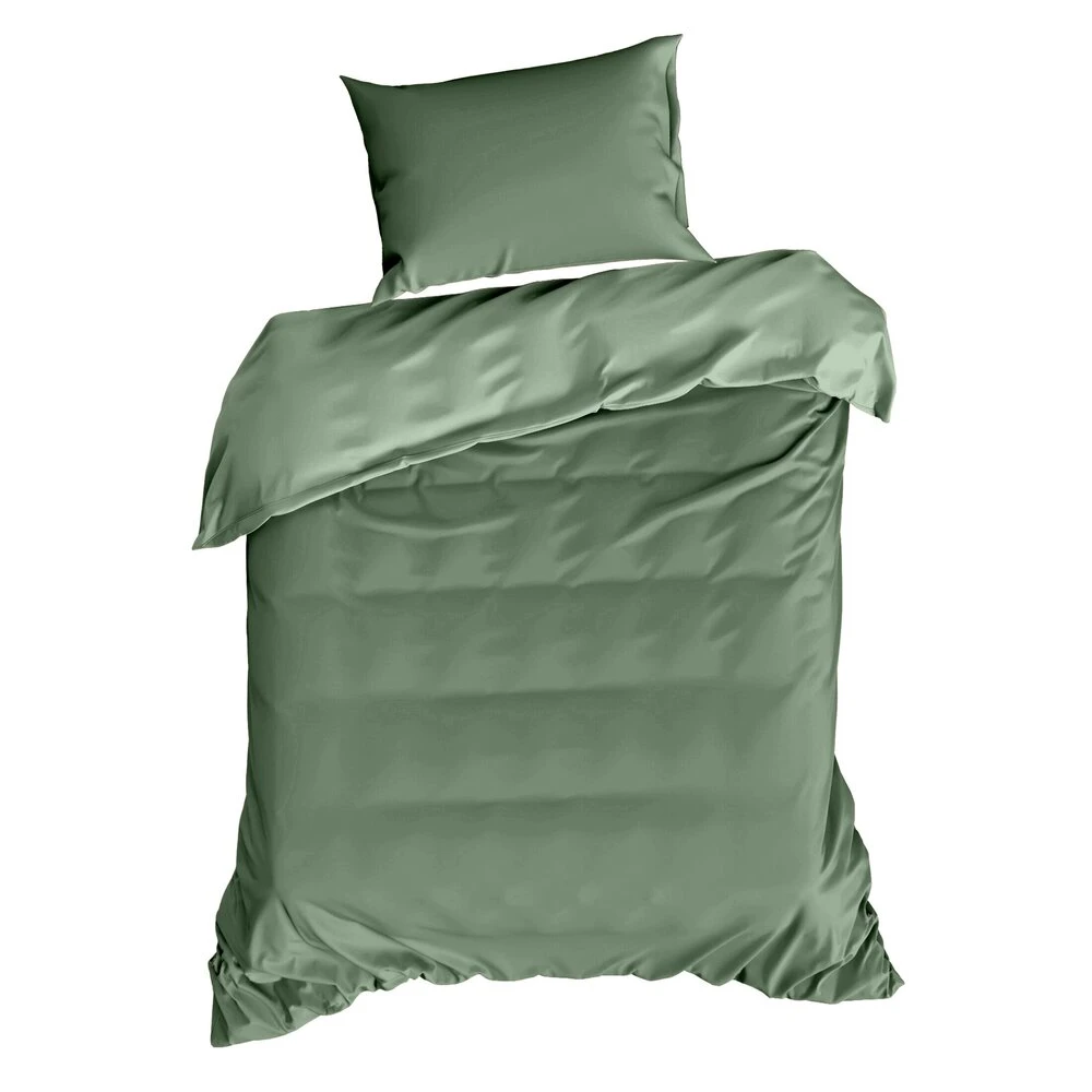 Gładka i lekka pościel z wysokiej jakości tkaniny bawełnianej. Przyjemna w dotyku bielizna pościelowa zapinana na zamek błyskawiczny jest odporna na pranie. szerokość: 140 cm, długość: 200 cm, kolor: szałwiowy, Gramatura: 125 GSM, Skład: satyna, 100% bawełna