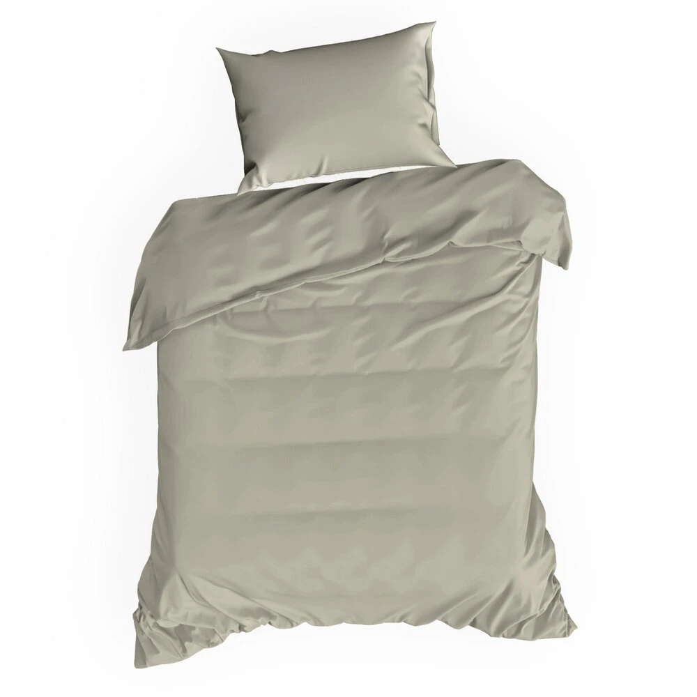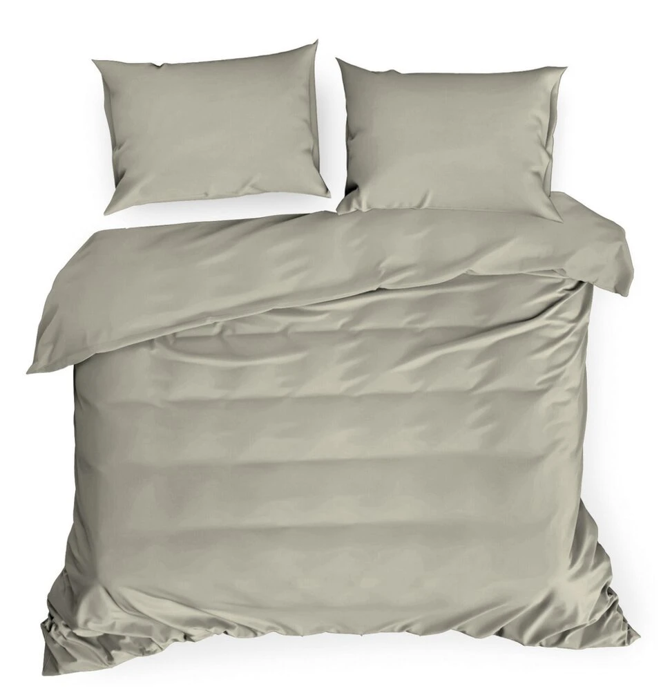 Gładka i lekka pościel z wysokiej jakości tkaniny bawełnianej. Przyjemna w dotyku bielizna pościelowa zapinana na zamek błyskawiczny jest odporna na pranie. szerokość: 140 cm, długość: 200 cm, kolor: szarobeżowy, Gramatura: 125 GSM, Skład: satyna, 100% bawełna