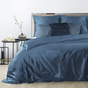 Gładka i lekka pościel z wysokiej jakości tkaniny bawełnianej. Przyjemna w dotyku bielizna pościelowa zapinana na zamek błyskawiczny jest odporna na pranie. szerokość: 160 cm, długość: 200 cm, kolor: ciemnogranatowy, Gramatura: 125 GSM, Skład: satyna, 100% bawełna