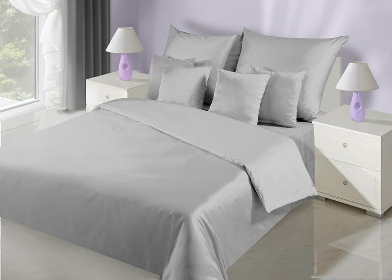 Gładka i lekka pościel z wysokiej jakości tkaniny bawełnianej. Przyjemna w dotyku bielizna pościelowa zapinana na zamek błyskawiczny jest odporna na pranie. szerokość: 180 cm, długość: 200 cm, kolor: jasnoszary, Gramatura: 125 GSM, Skład: satyna, 100% bawełna