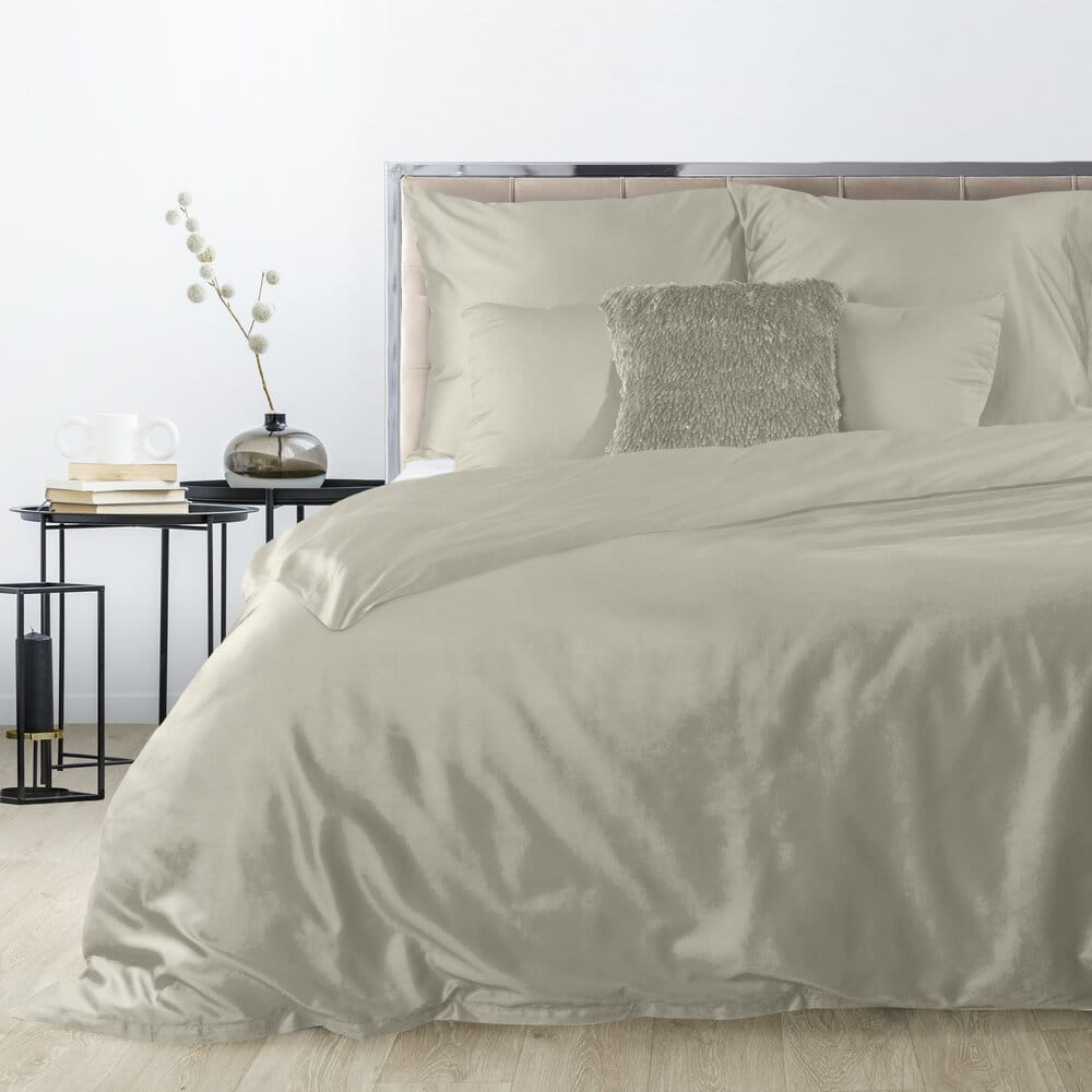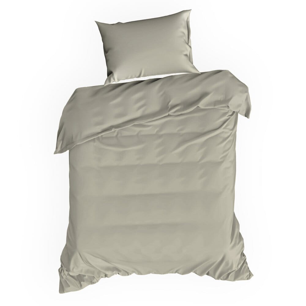 Gładka i lekka pościel z wysokiej jakości tkaniny bawełnianej. Przyjemna w dotyku bielizna pościelowa zapinana na zamek błyskawiczny jest odporna na pranie. szerokość: 220 cm, długość: 200 cm, kolor: szarobeżowy, Gramatura: 125 GSM, Skład: satyna, 100% bawełna