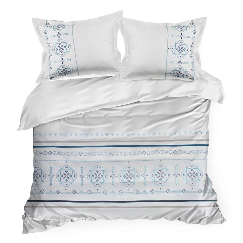 Komplet pościeli bawełnianej z haftem szerokość: 160 cm, długość: 200 cm, kolor: biały, Gramatura: 120 GSM, Skład: 100% bawełna
