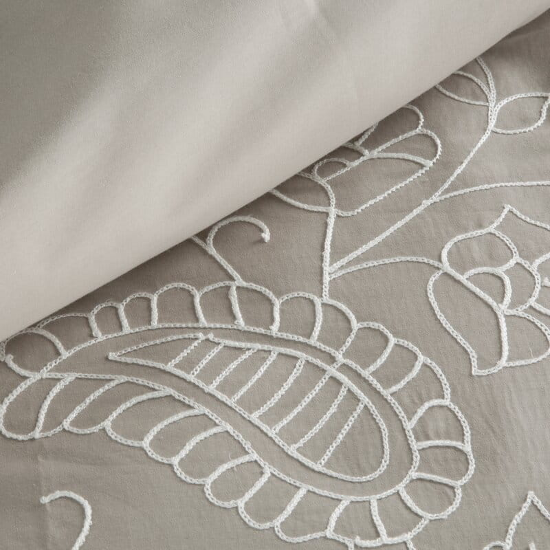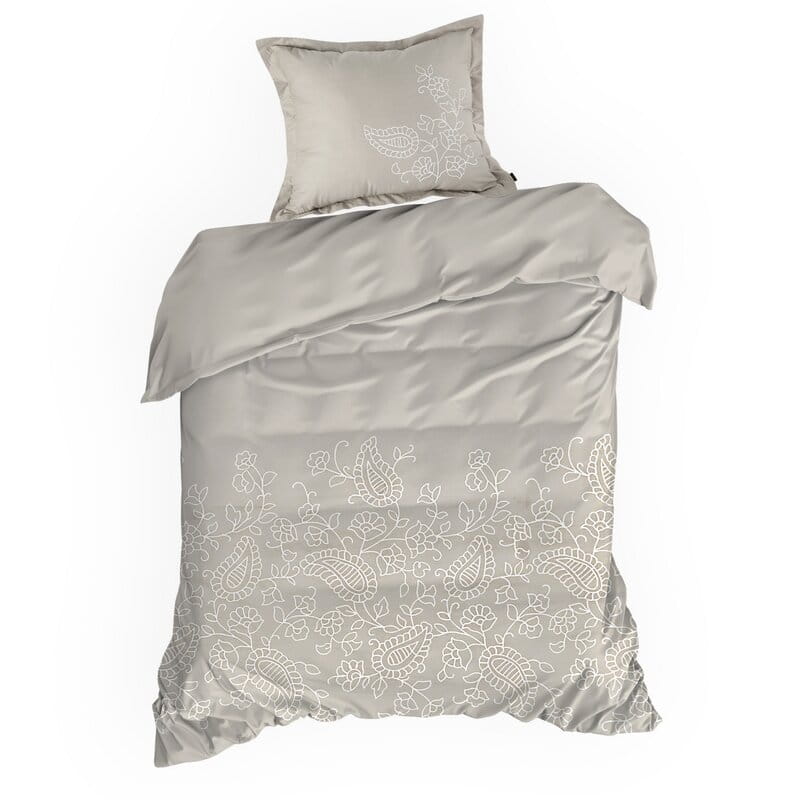 Komplet pościeli bawełnianej z haftem szerokość: 220 cm, długość: 200 cm, kolor: beżowy, Gramatura: 120 GSM, Skład: 100% bawełna