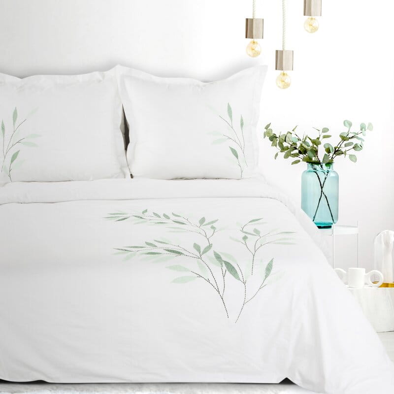 Komplet pościeli bawełnianej z haftem szerokość: 220 cm, długość: 200 cm, kolor: biały, Gramatura: 120 GSM, Skład: 100% bawełna
