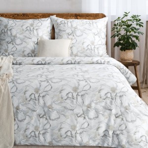 Komplet pościeli z satyny bawełnianej z nadrukiem szerokość: 160 cm, długość: 200 cm, kolor: kremowy, Gramatura: 115 GSM, Skład: satyna, 100% bawełna
