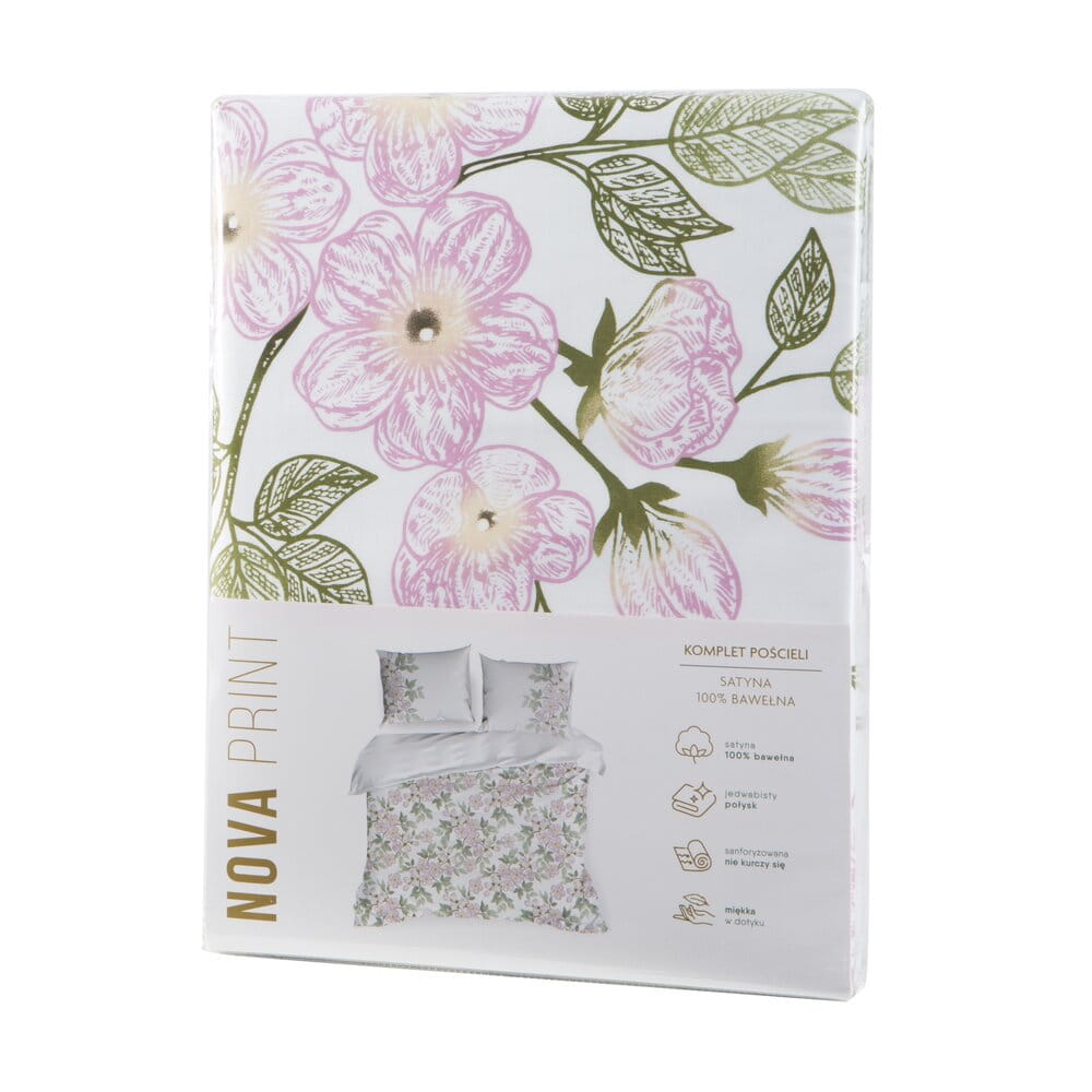 Komplet pościeli z satyny bawełnianej z nadrukiem szerokość: 220 cm, długość: 200 cm, kolor: biały, Gramatura: 125 GSM, Skład: satyna, 100% bawełna