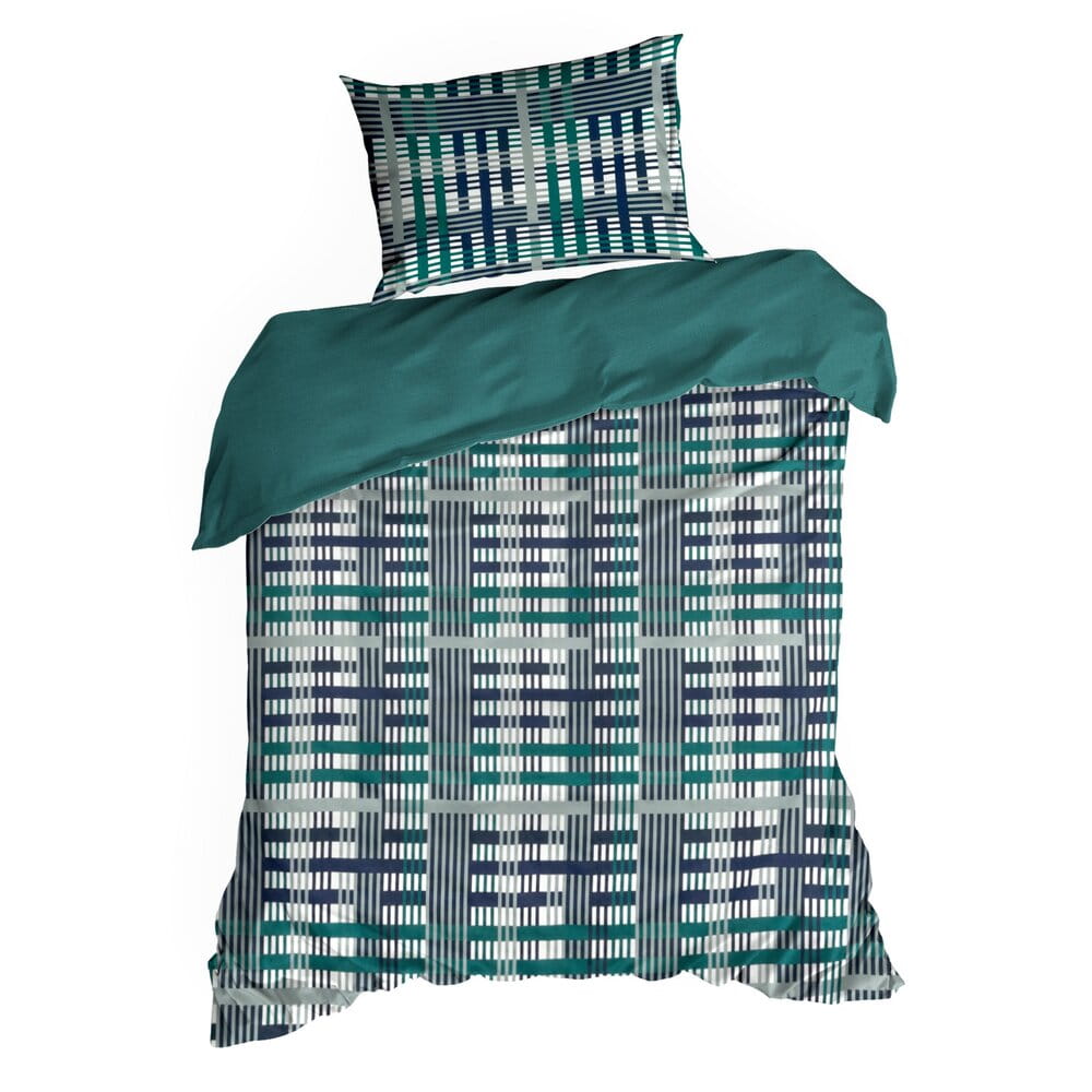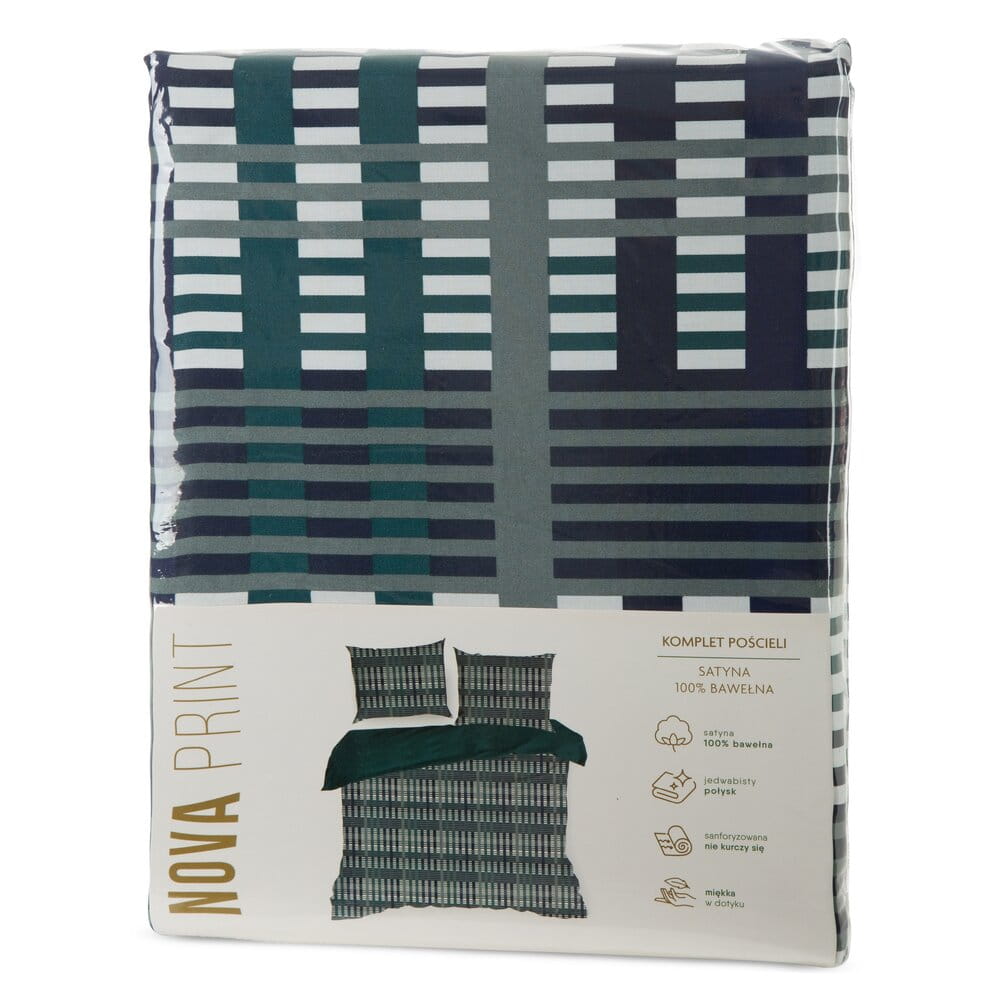 Komplet pościeli z satyny bawełnianej z nadrukiem szerokość: 220 cm, długość: 200 cm, kolor: ciemnoturkusowy, Gramatura: 125 GSM, Skład: satyna, 100% bawełna
