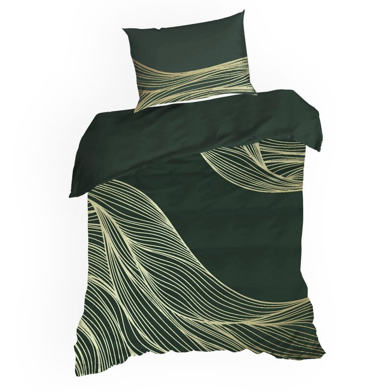 Pościel z makosatyny bawełnianej ze złotym nadrukiem szerokość: 220 cm, długość: 200 cm, kolor: ciemnozielony, Gramatura: 125 GSM, Skład: 100% bawełna