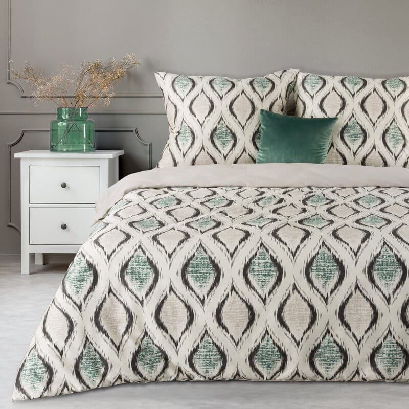 Komplet pościeli z satyny bawełnianej z nadrukiem szerokość: 220 cm, długość: 200 cm, kolor: kremowy, Gramatura: 115 GSM, Skład: satyna, 100% bawełna