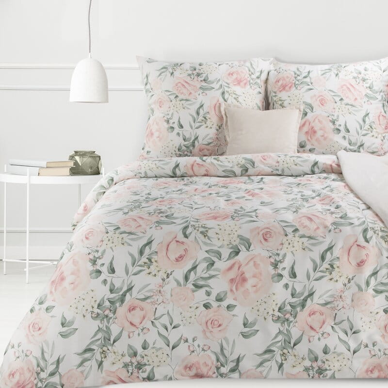 Komplet pościeli z satyny bawełnianej z nadrukiem szerokość: 220 cm, długość: 200 cm, kolor: biały, Gramatura: 115 GSM, Skład: satyna, 100% bawełna