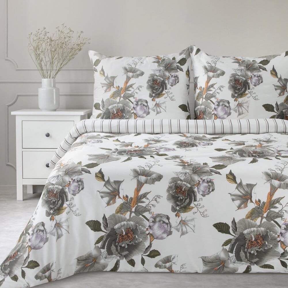 Komplet pościeli z satyny bawełnianej z nadrukiem szerokość: 220 cm, długość: 200 cm, kolor: biały, Gramatura: 115 GSM, Skład: satyna, 100% bawełna