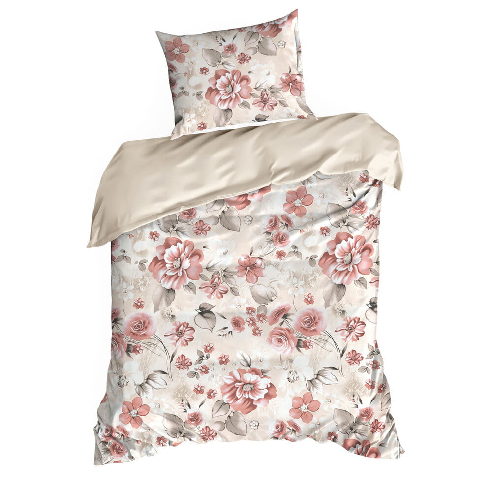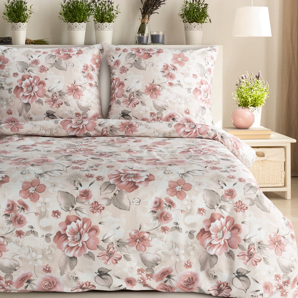 Komplet pościeli z satyny bawełnianej z nadrukiem szerokość: 220 cm, długość: 200 cm, kolor: pudrowy róż, Gramatura: 115 GSM, Skład: satyna, 100% bawełna