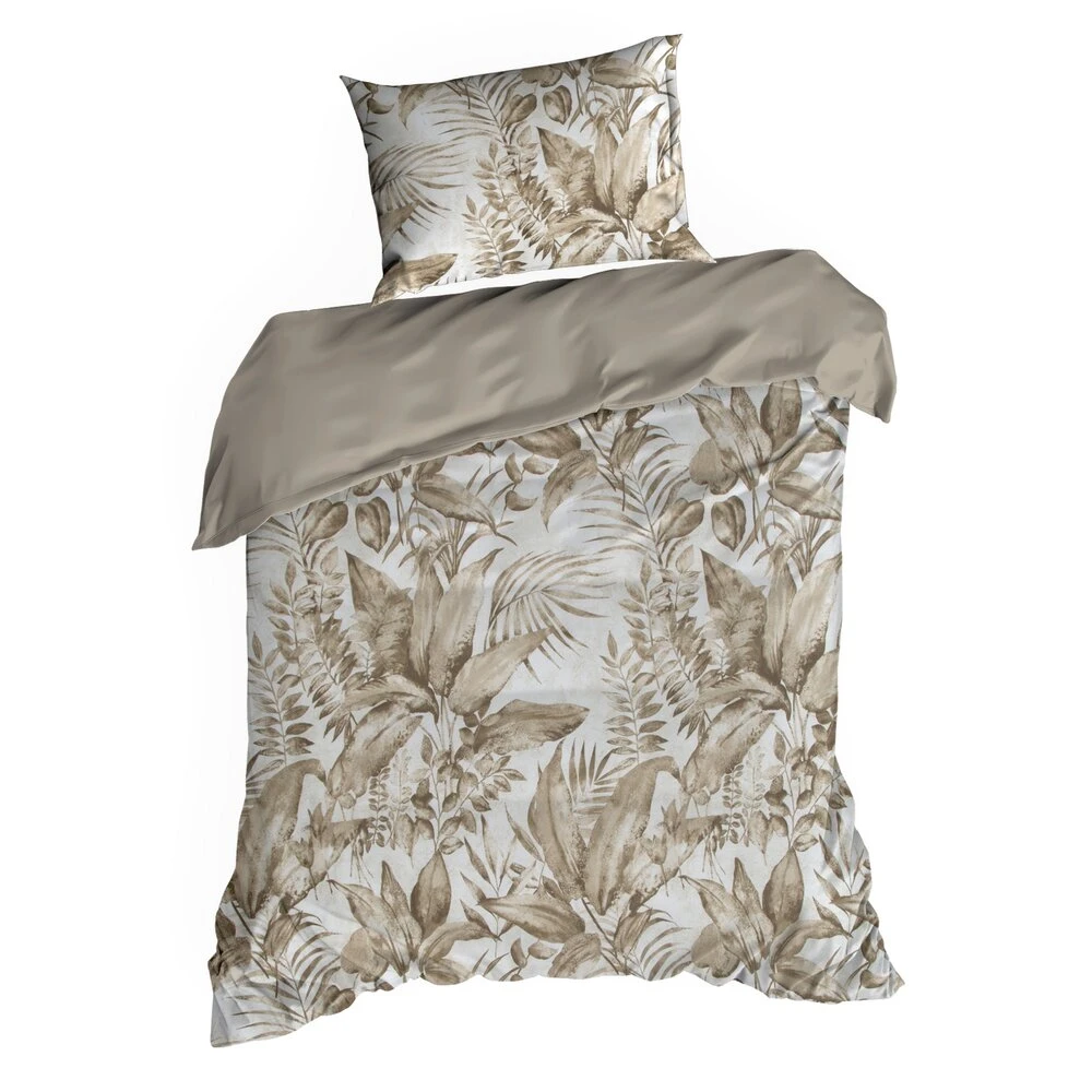 Komplet pościeli z satyny bawełnianej z nadrukiem szerokość: 160 cm, długość: 200 cm, kolor: beżowy, Gramatura: 115 GSM, Skład: satyna, 100% bawełna
