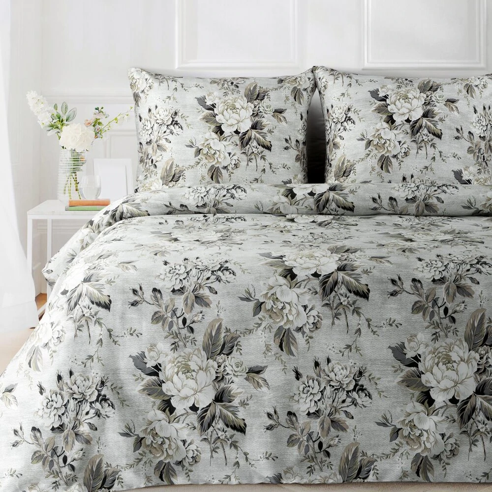 Komplet pościeli z satyny bawełnianej z nadrukiem szerokość: 160 cm, długość: 200 cm, kolor: srebrny, Gramatura: 115 GSM, Skład: satyna, 100% bawełna