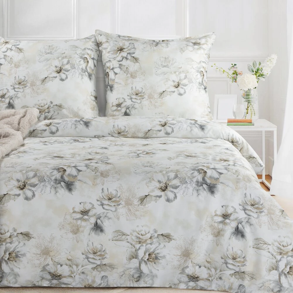 Komplet pościeli z satyny bawełnianej z nadrukiem szerokość: 140 cm, długość: 200 cm, kolor: jasnobeżowy, Gramatura: 115 GSM, Skład: satyna, 100% bawełna