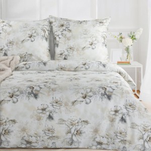 Komplet pościeli z satyny bawełnianej z nadrukiem szerokość: 220 cm, długość: 200 cm, kolor: jasnobeżowy, Gramatura: 115 GSM, Skład: satyna, 100% bawełna