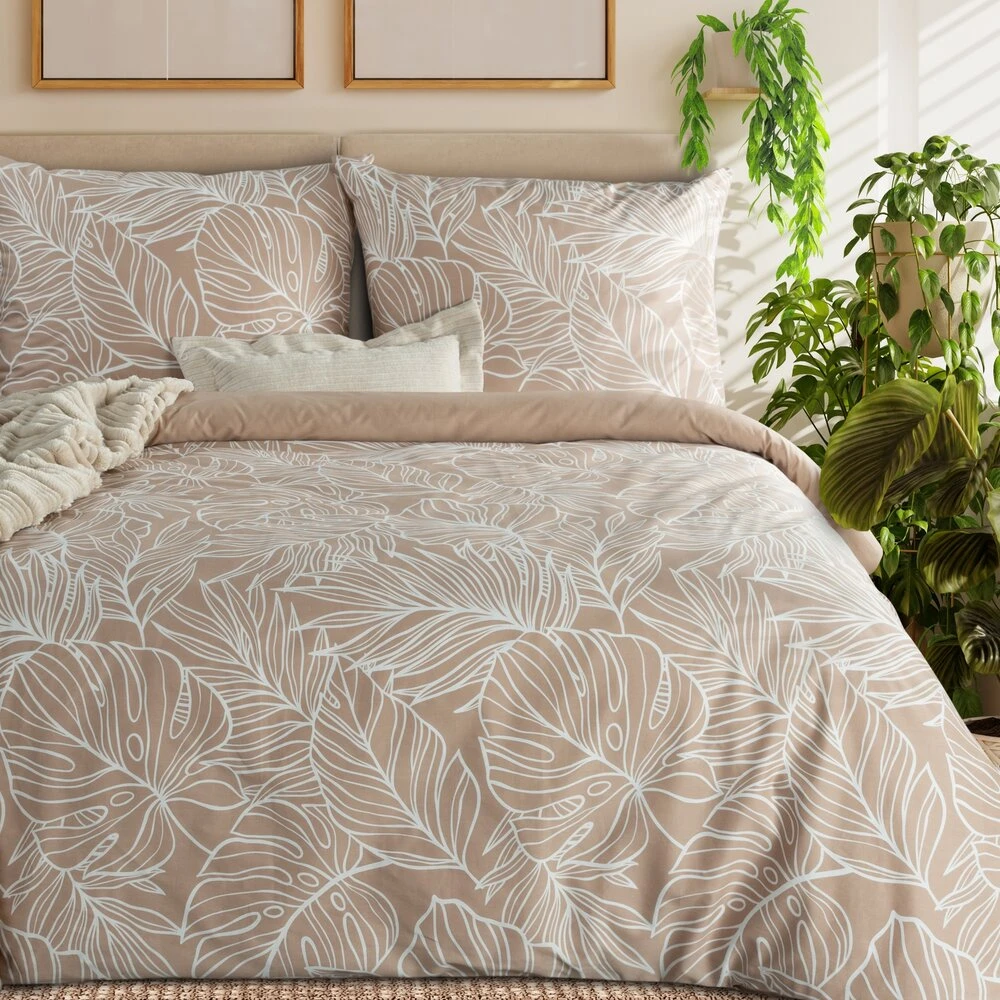 Komplet pościeli z satyny bawełnianej z nadrukiem szerokość: 160 cm, długość: 200 cm, kolor: jasnobrązowy, Gramatura: 115 GSM, Skład: satyna, 100% bawełna