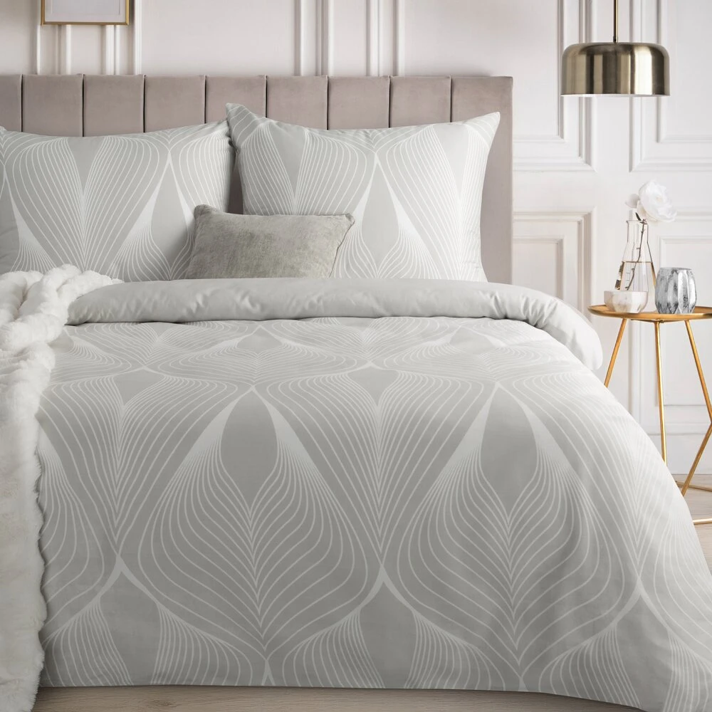 Komplet pościeli z satyny bawełnianej z nadrukiem szerokość: 140 cm, długość: 200 cm, kolor: jasnoszary, Gramatura: 115 GSM, Skład: satyna, 100% bawełna