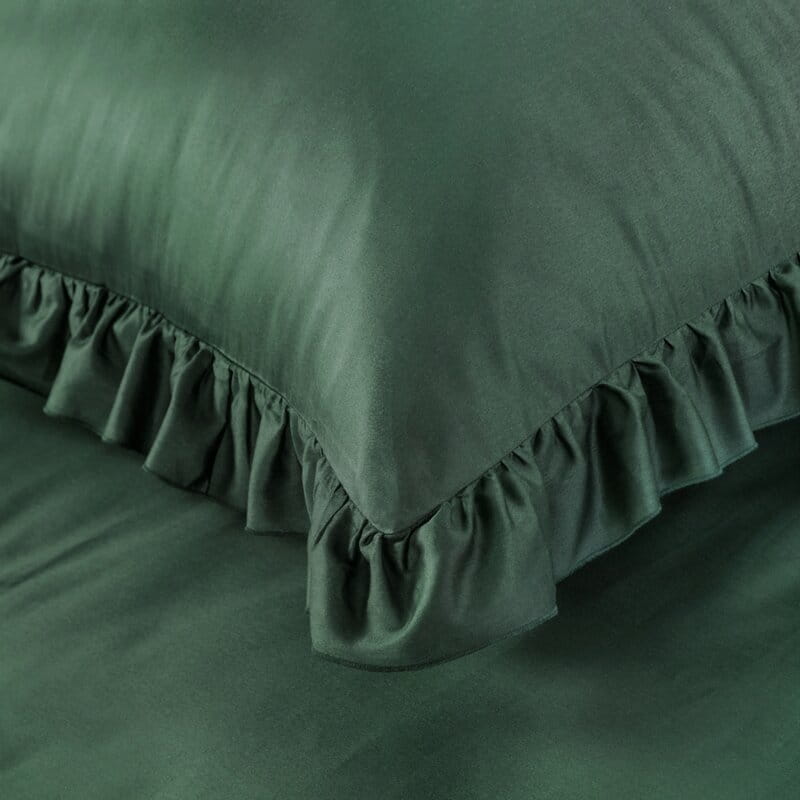 Pościel z makosatyny bawełnianej z falbanką szerokość: 160 cm, długość: 200 cm, kolor: butelkowy zielony, Gramatura: 125 GSM, Skład: 100% bawełna