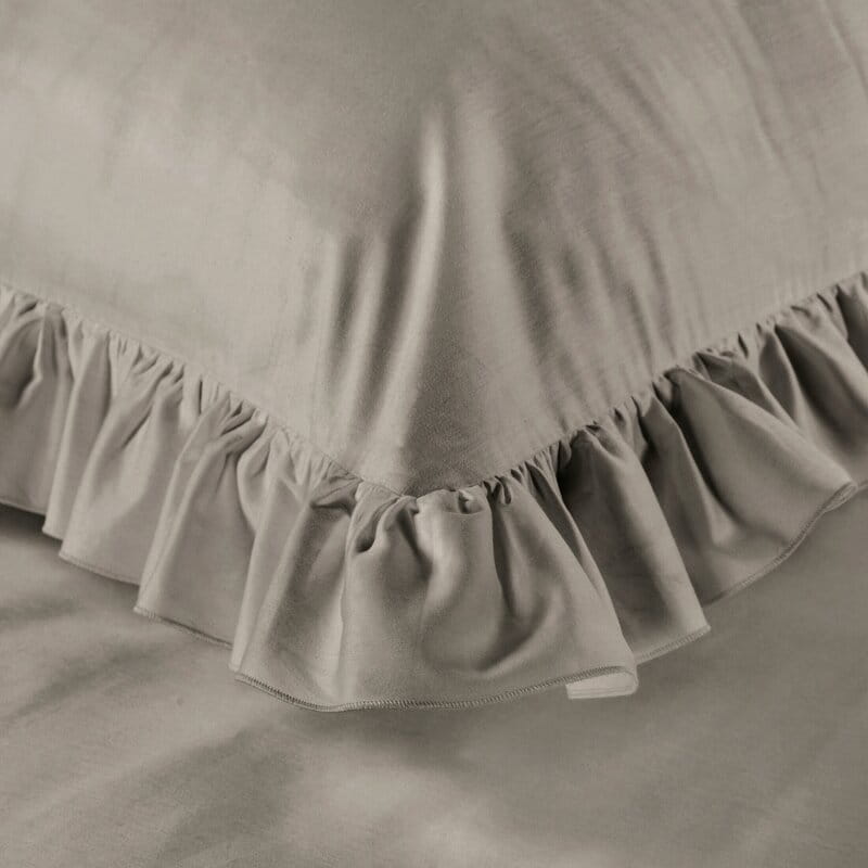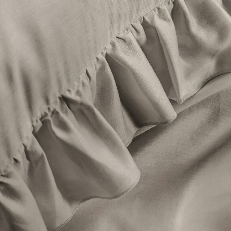 Pościel z makosatyny bawełnianej z falbanką szerokość: 160 cm, długość: 200 cm, kolor: jasnobrązowy, Gramatura: 125 GSM, Skład: 100% bawełna