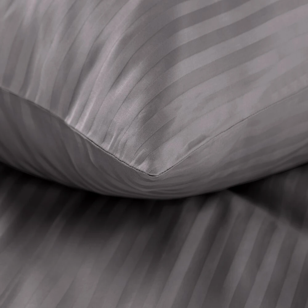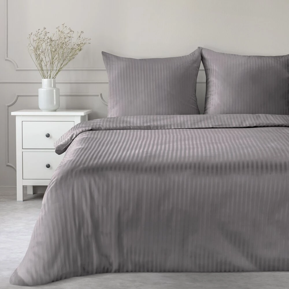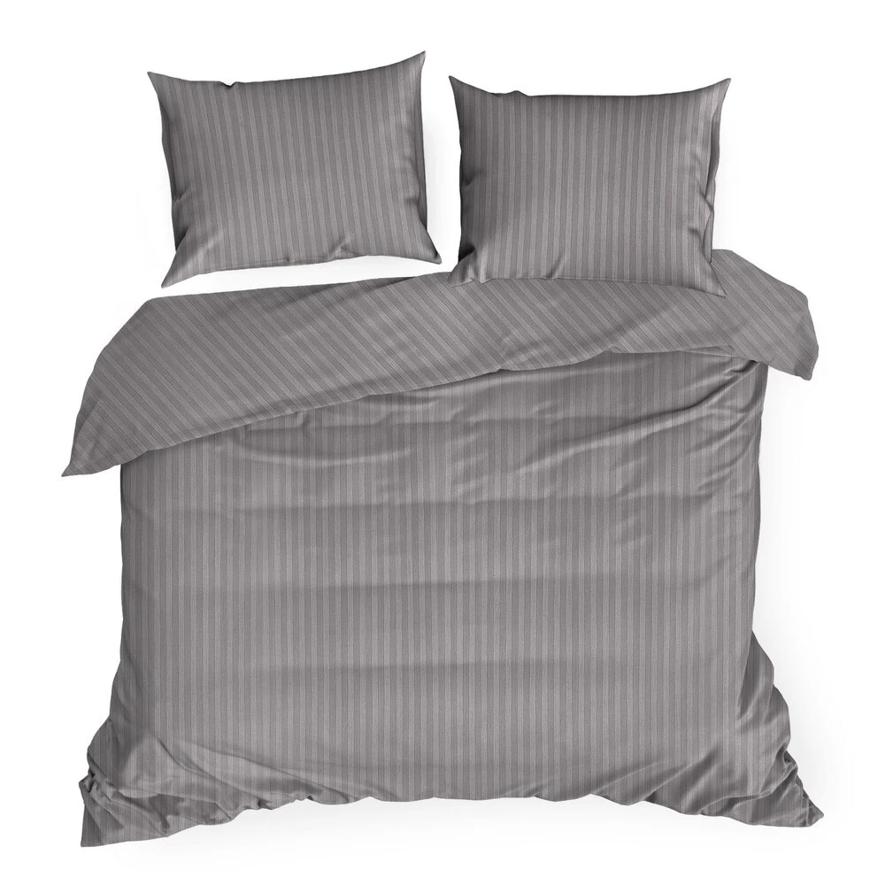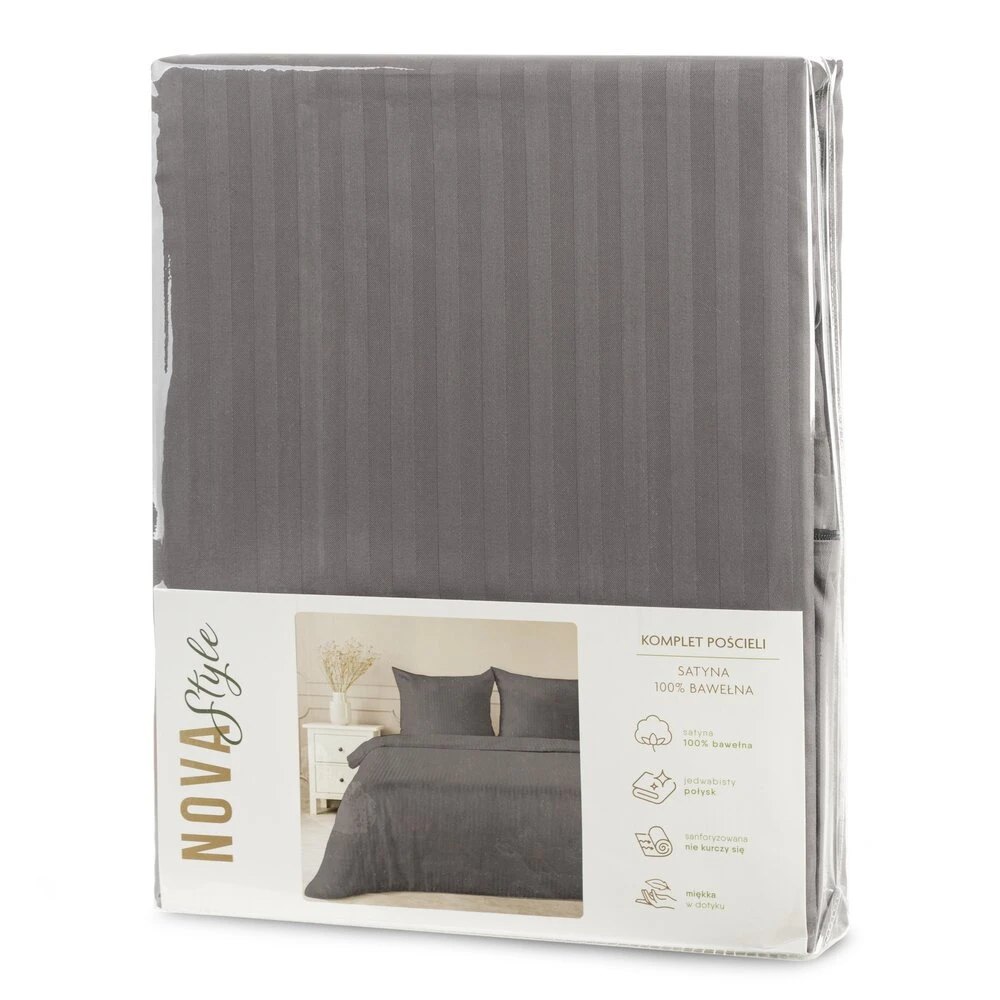Komplet pościeli jednokolorowej w prążki z adamaszku satynowego szerokość: 160 cm, długość: 200 cm, kolor: stalowy, Gramatura: 125 GSM, Skład: satyna, 100% bawełna