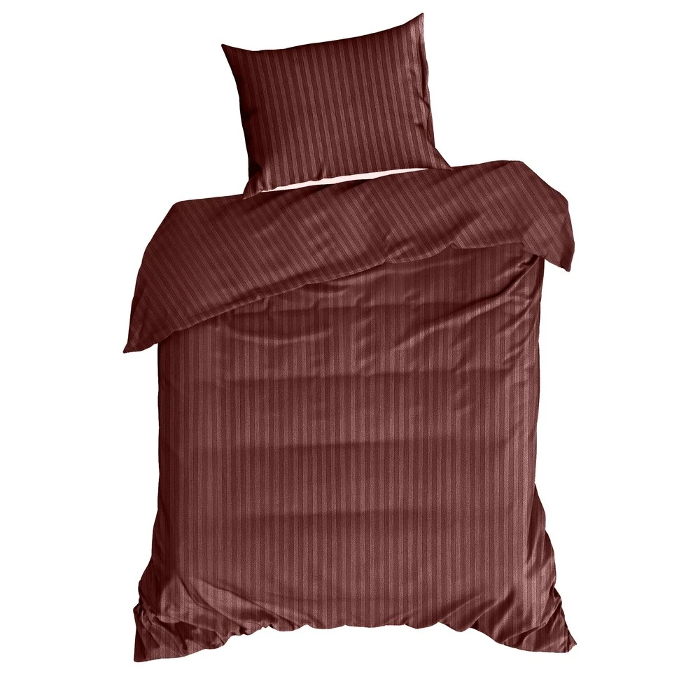 Komplet pościeli jednokolorowej w prążki z adamaszku satynowego szerokość: 220 cm, długość: 200 cm, kolor: burgundowy, Gramatura: 125 GSM, Skład: satyna, 100% bawełna