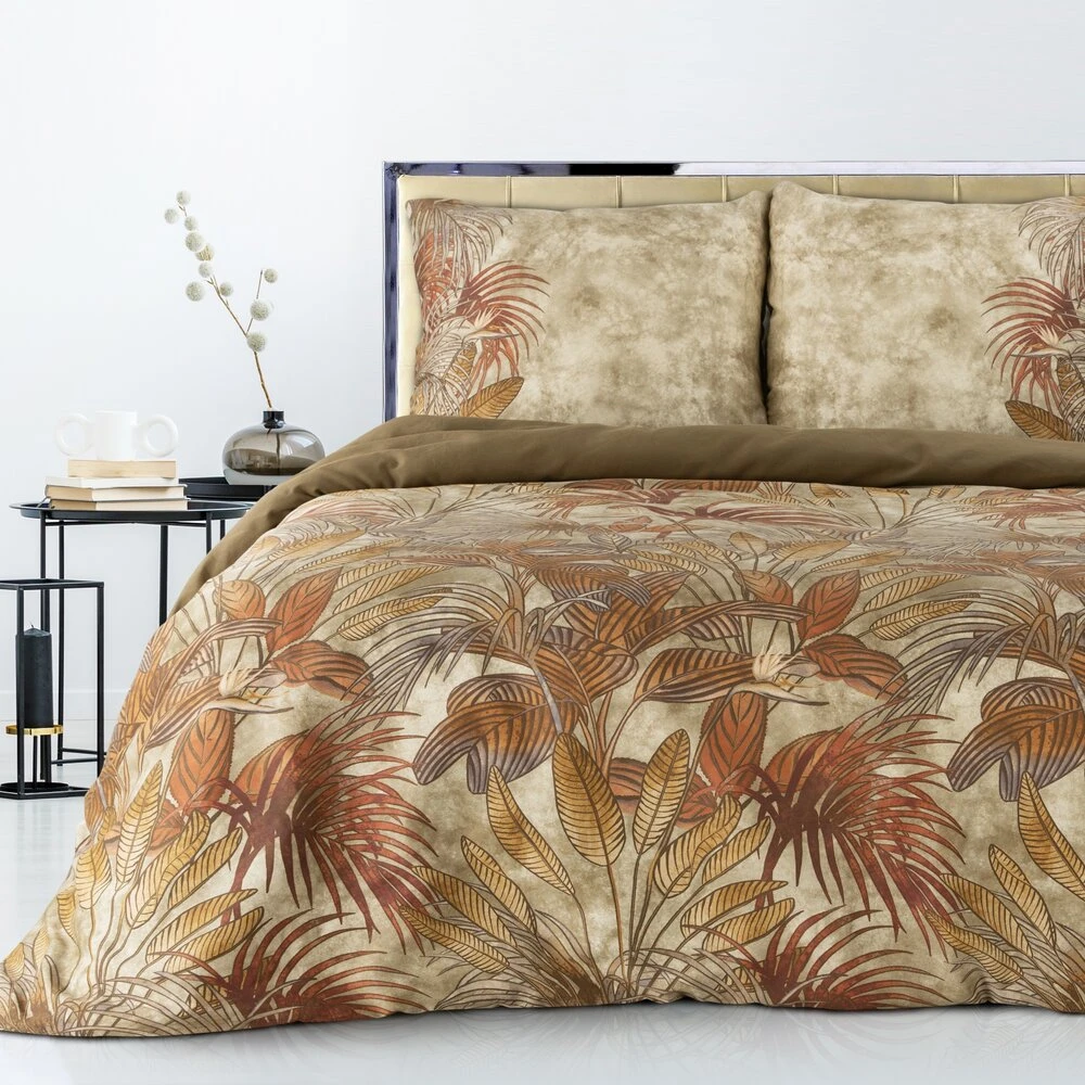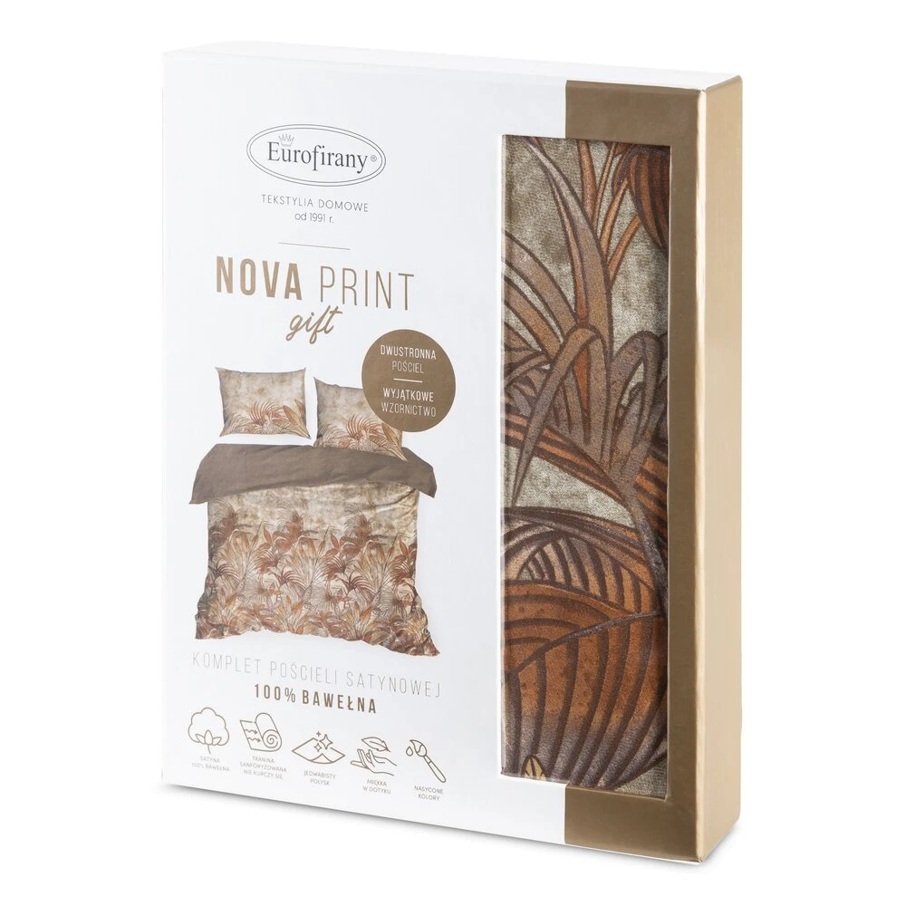 Komplet pościeli z satyny bawełnianej z nadrukiem, pakowana w pudełku szerokość: 220 cm, długość: 200 cm, kolor: beżowy, Gramatura: 125 GSM, Skład: satyna, 100% bawełna