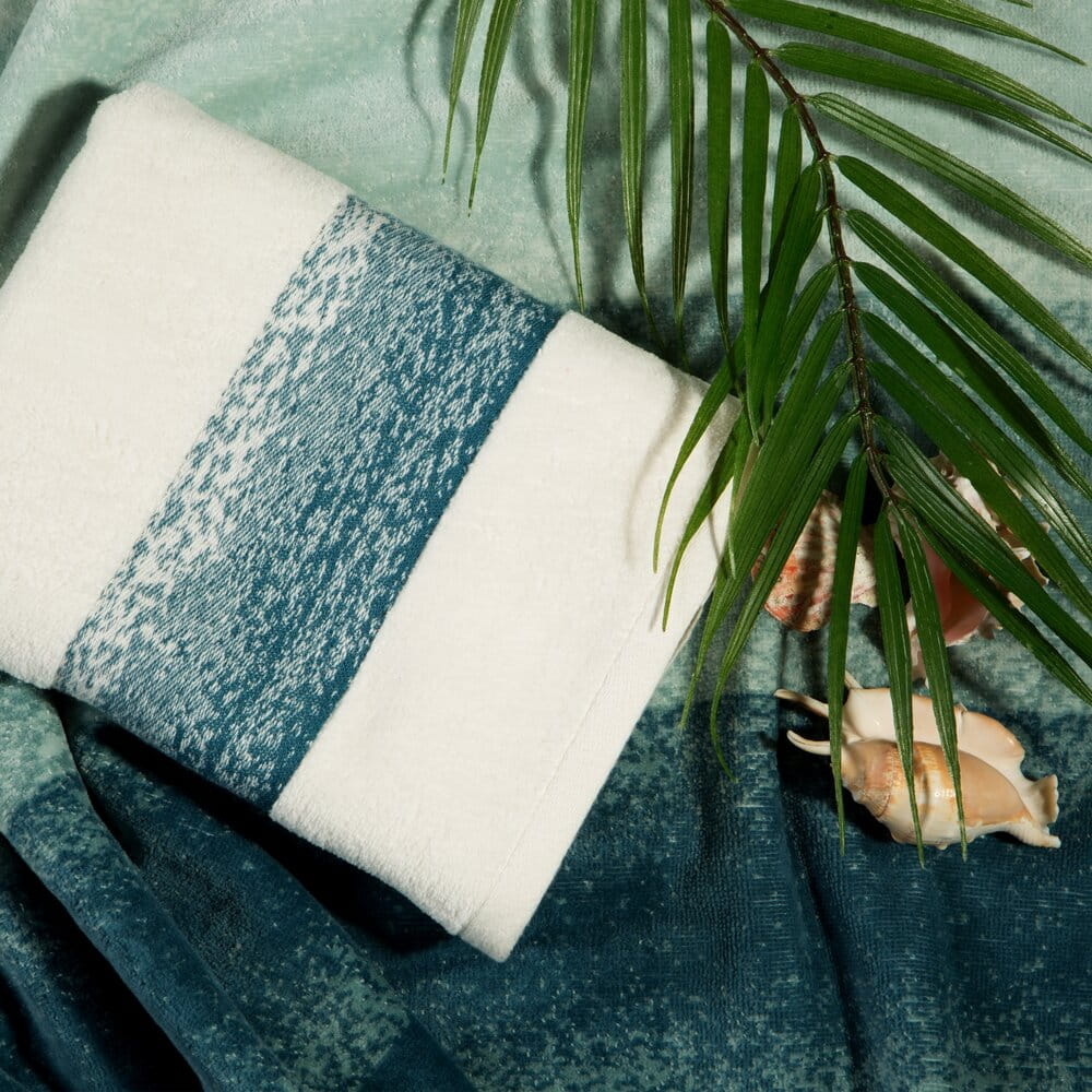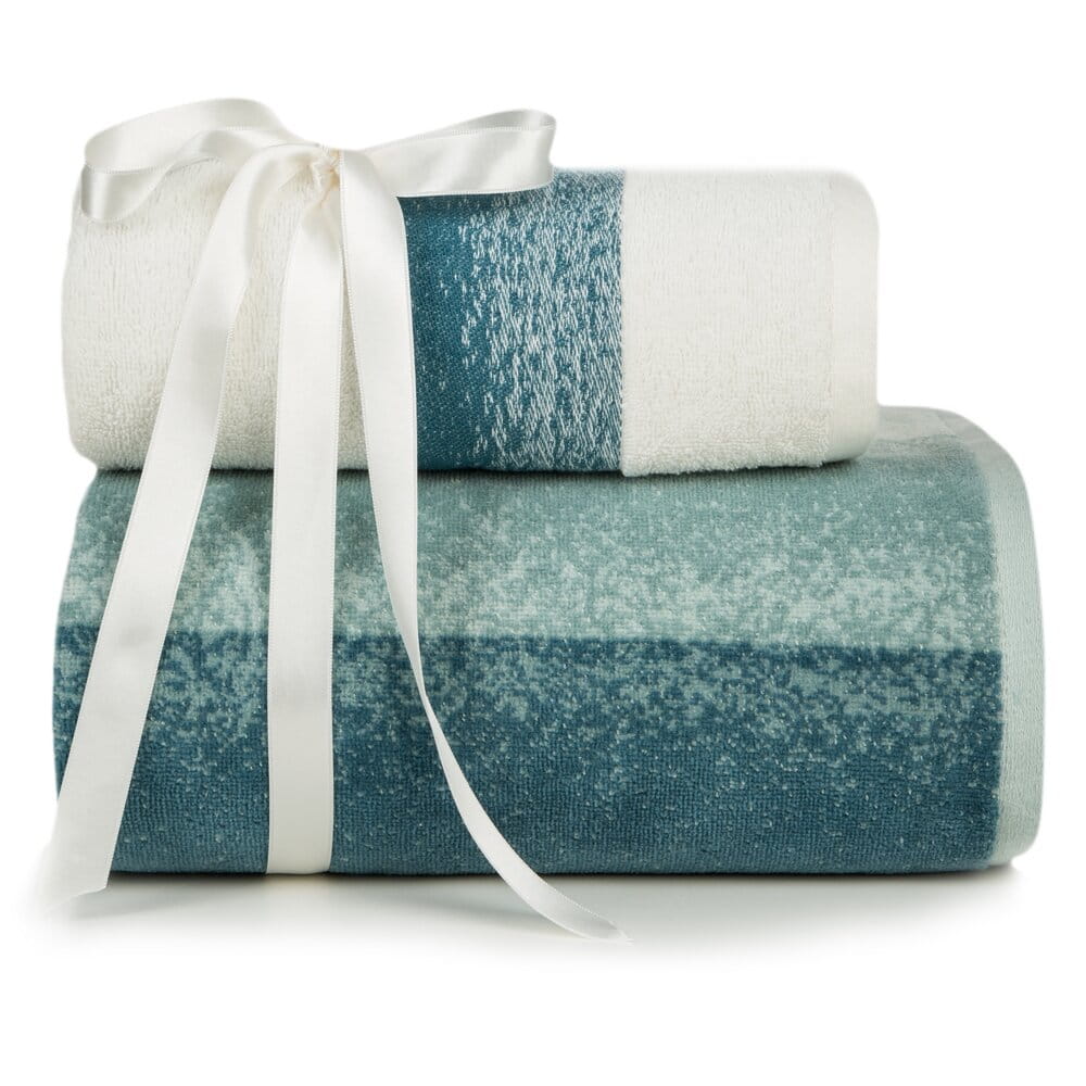 Komplet ręczników w pasy z efektem cieniowania szerokość: 37 cm, długość: 25 cm, kolor: niebieski, Gramatura: 485+500 GSM, Skład: 100% bawełna: część ozdobna: 96% bawełna, 4% poliester: 100% bawełna