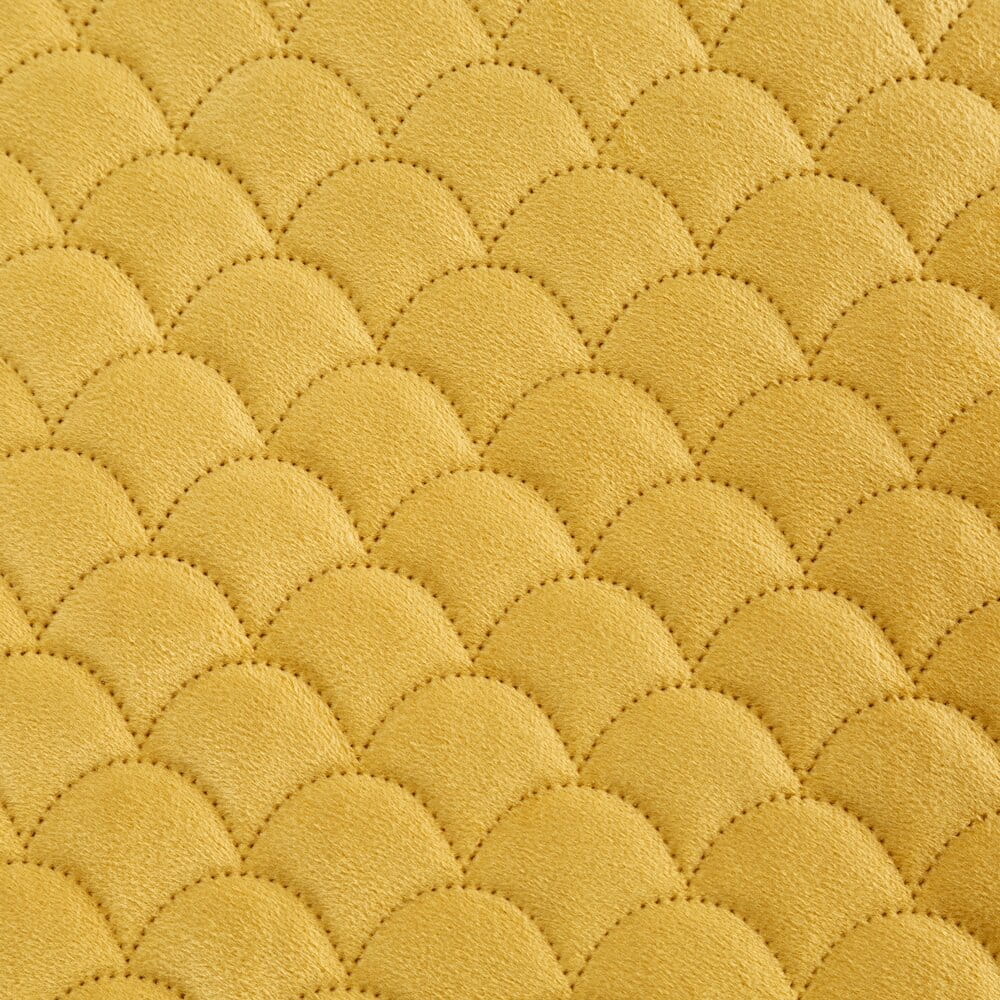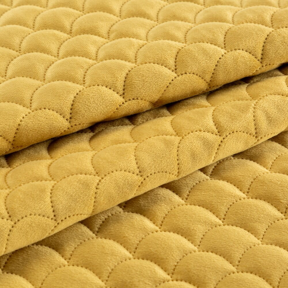 Klasyczna i bardzo elegancka narzuta na łóżko z miękkiego welwetu pikowana w modny motyw łuski. Pikowania wykonane metodą bezszwową hotpress. szerokość: 220 cm, długość: 240 cm, kolor: musztardowy, Gramatura: 180+70+100 GSM, Skład: 100% poliester