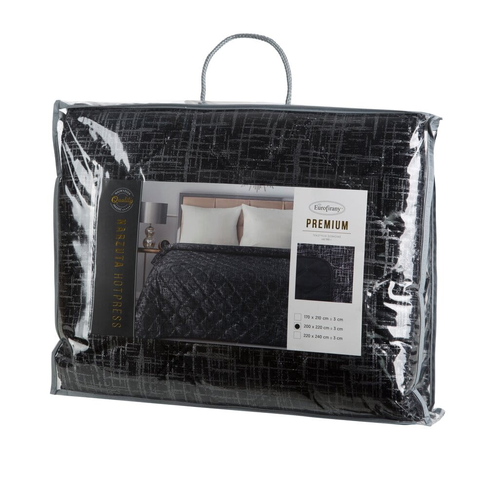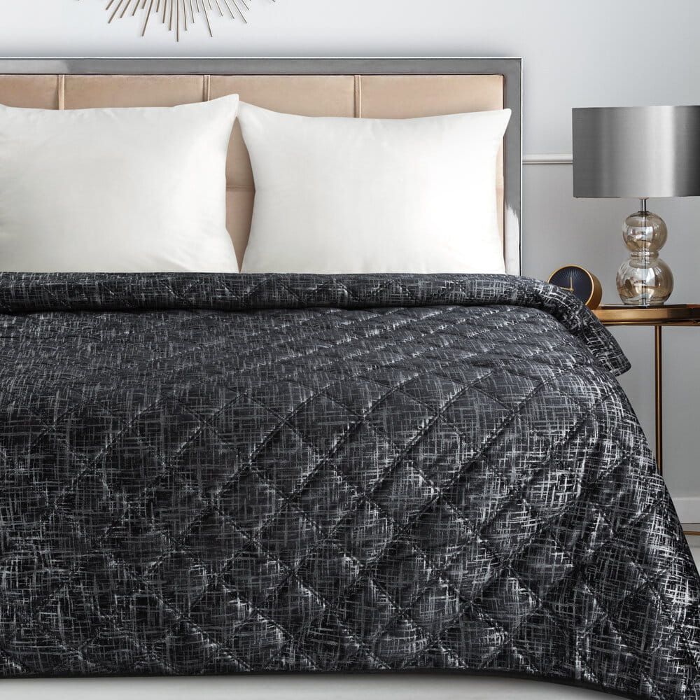 Narzuta welwetowa, wykonana techniką hot press"z foliowym nadrukiem szerokość: 170 cm, długość: 210 cm, kolor: czarny, Gramatura: 210 GSM, Skład: 100% poliester"