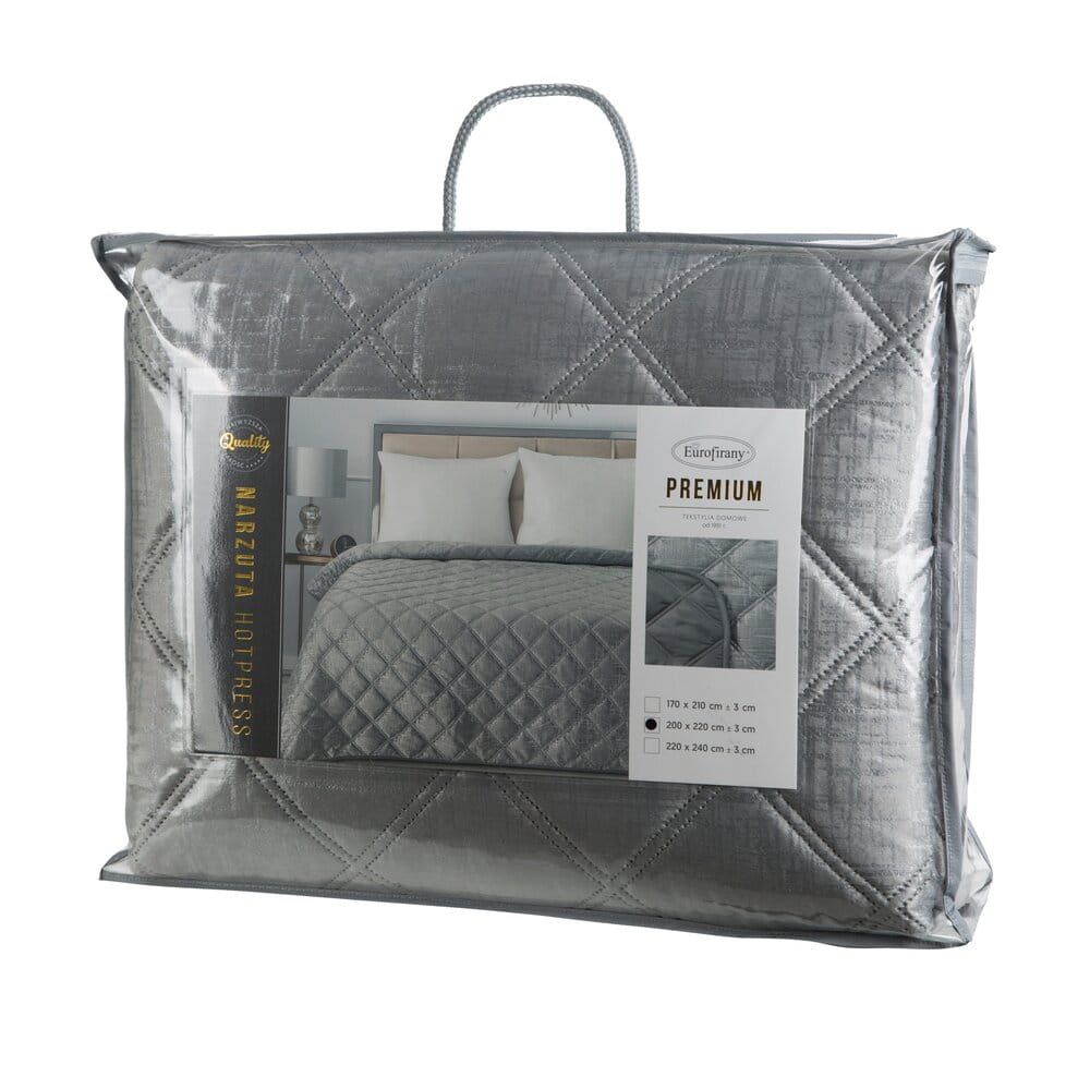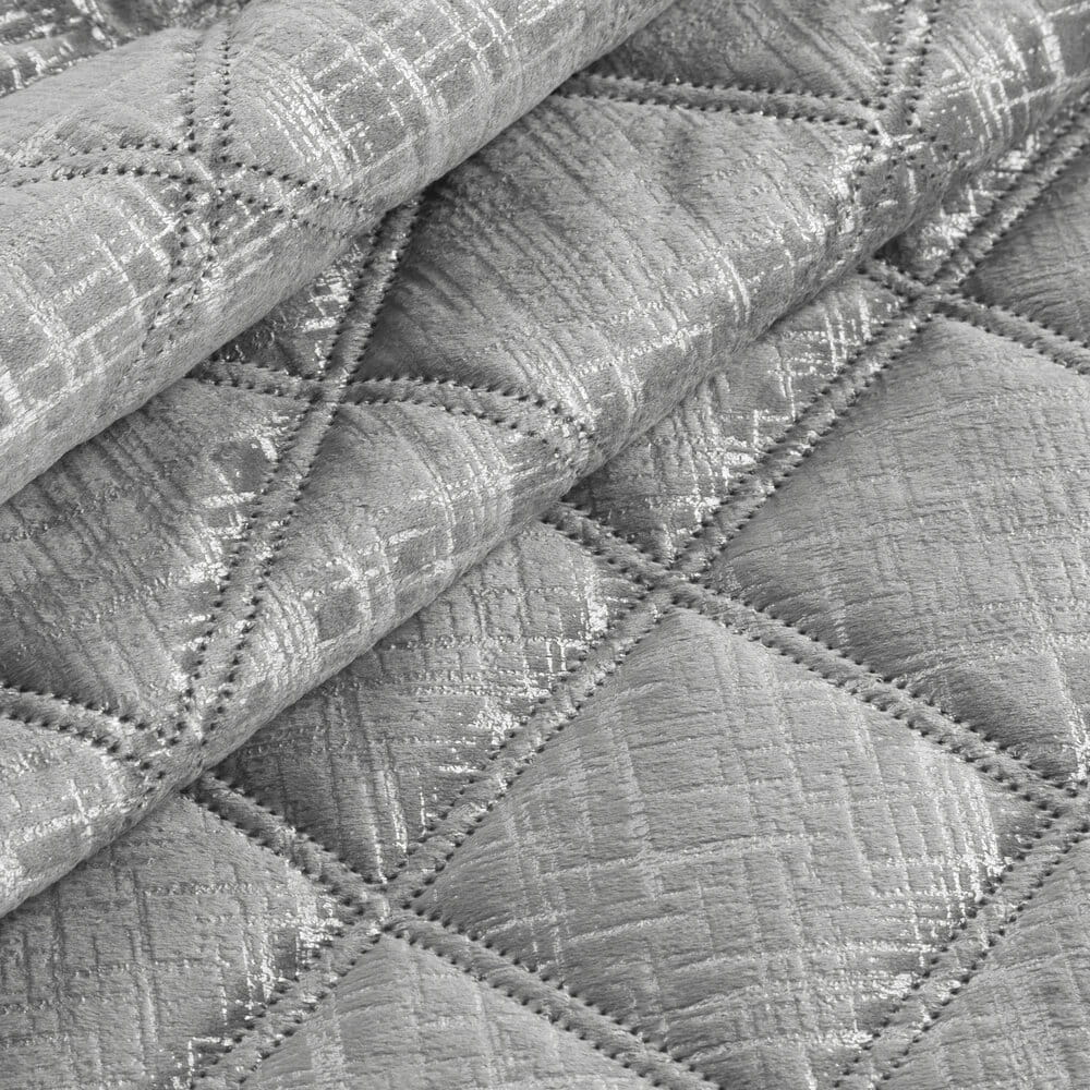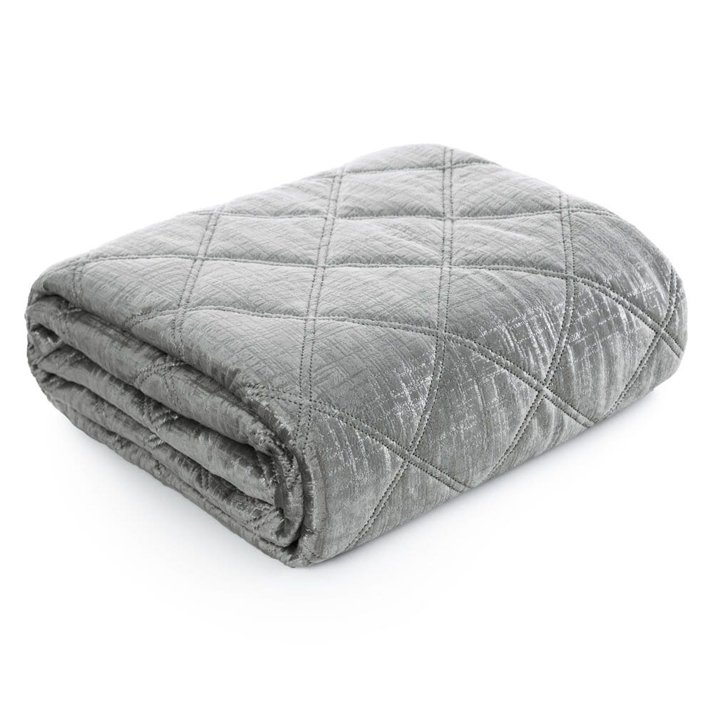 Narzuta welwetowa, wykonana techniką hot press"z foliowym nadrukiem szerokość: 170 cm, długość: 210 cm, kolor: srebrny, Gramatura: 210 GSM, Skład: 100% poliester"