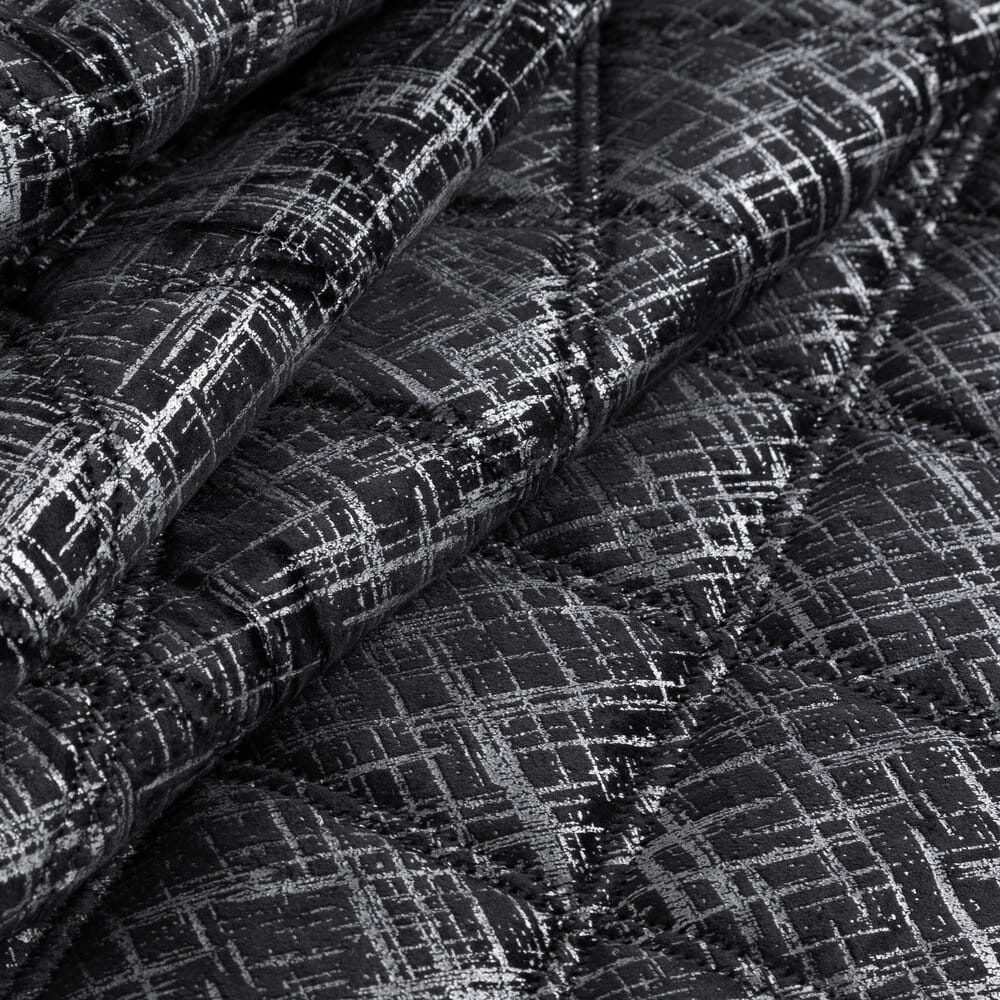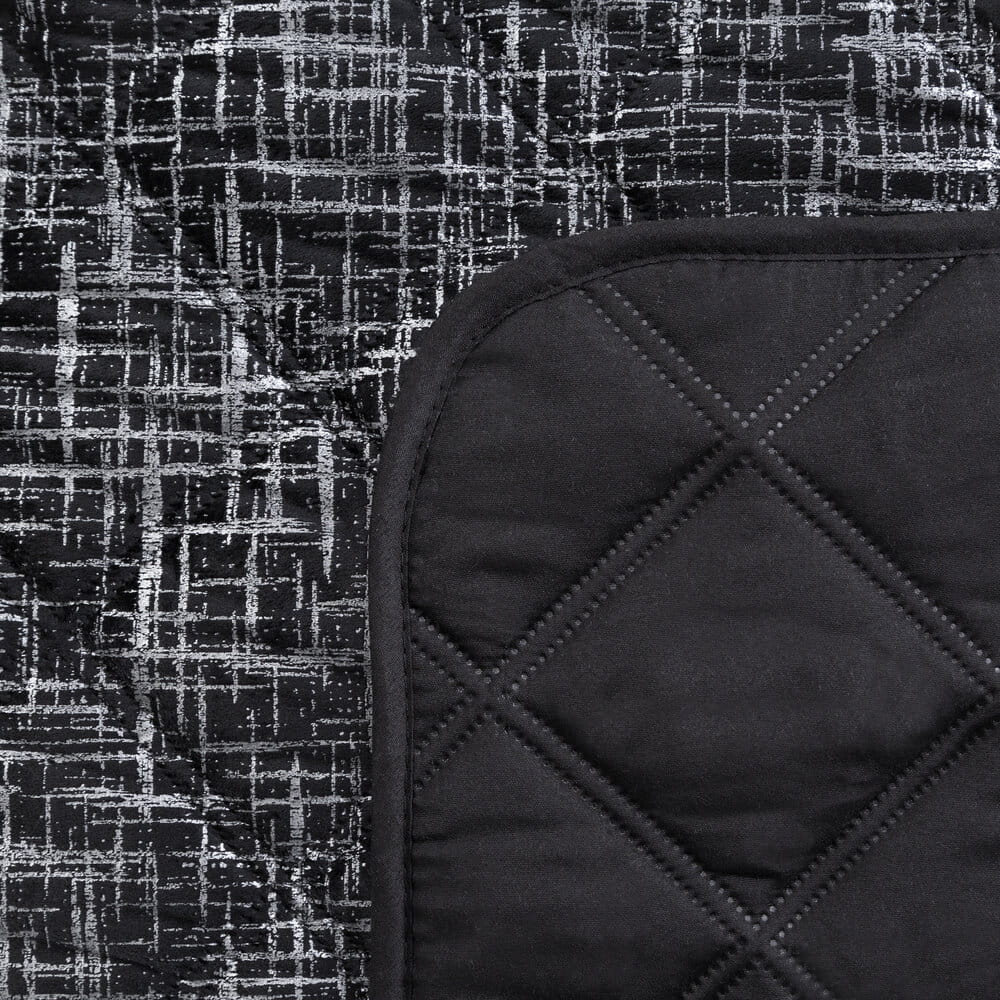Narzuta welwetowa, wykonana techniką hot press"z foliowym nadrukiem szerokość: 220 cm, długość: 240 cm, kolor: czarny, Gramatura: 210 GSM, Skład: 100% poliester"