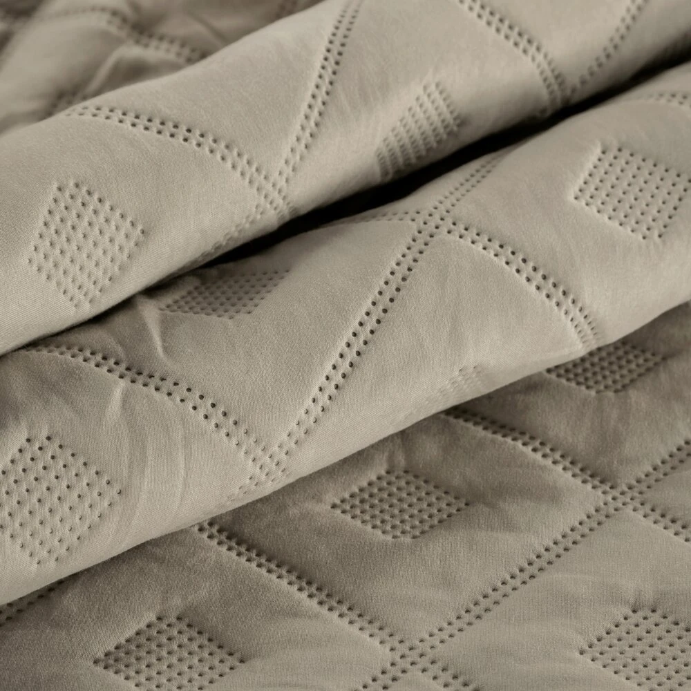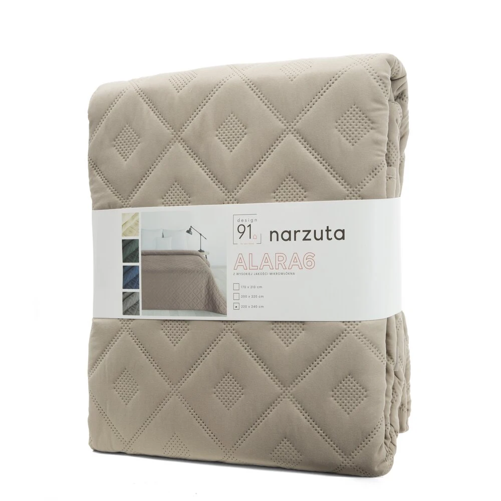Narzuta jednokolorowa, wykonana techniką hot press szerokość: 200 cm, długość: 220 cm, kolor: ciemnobeżowy, Gramatura: 85+120+70 GSM, Skład: 100% poliester