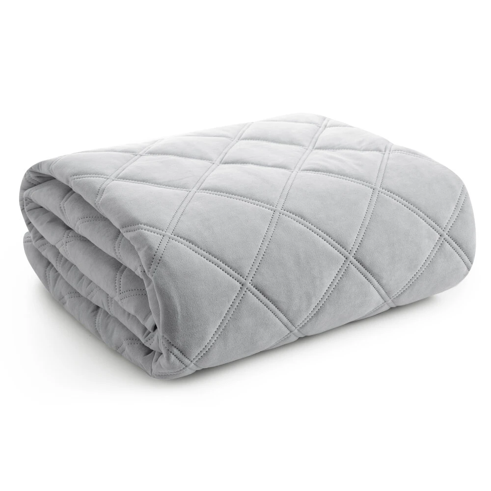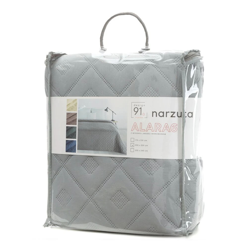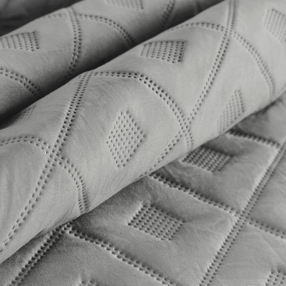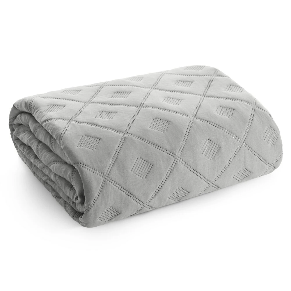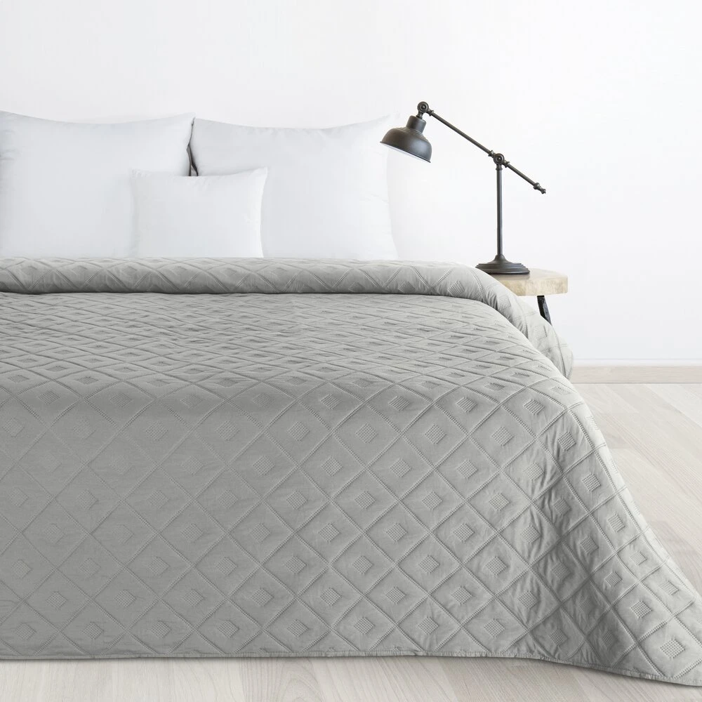 Narzuta jednokolorowa, wykonana techniką hot press szerokość: 200 cm, długość: 220 cm, kolor: srebrny, Gramatura: 85+120+70 GSM, Skład: 100% poliester