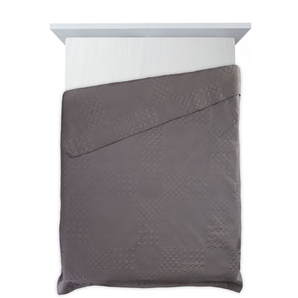 Narzuta jednokolorowa, wykonana techniką hot press szerokość: 220 cm, długość: 240 cm, kolor: grafitowy, Gramatura: 70+120+70 GSM, Skład: 100%poliester