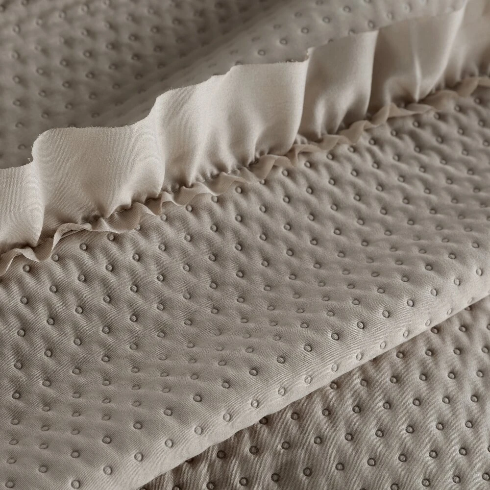 Narzuta na łóżko obszyta dekoracyjną falbanką szerokość: 170 cm, długość: 210 cm, kolor: ciemnobeżowy, Skład: 100% poliester