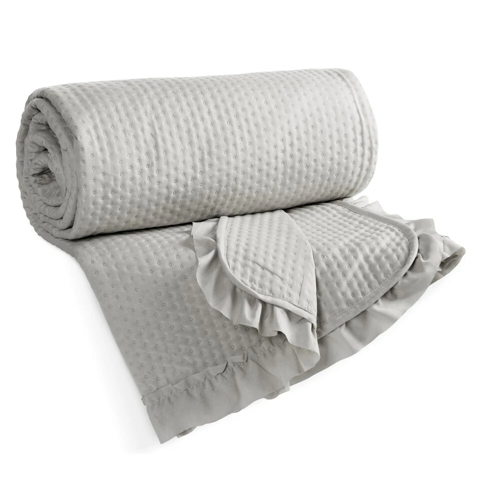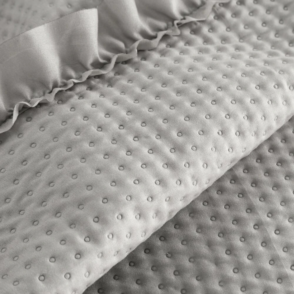 Narzuta na łóżko obszyta dekoracyjną falbanką szerokość: 170 cm, długość: 210 cm, kolor: srebrny, Skład: 100% poliester