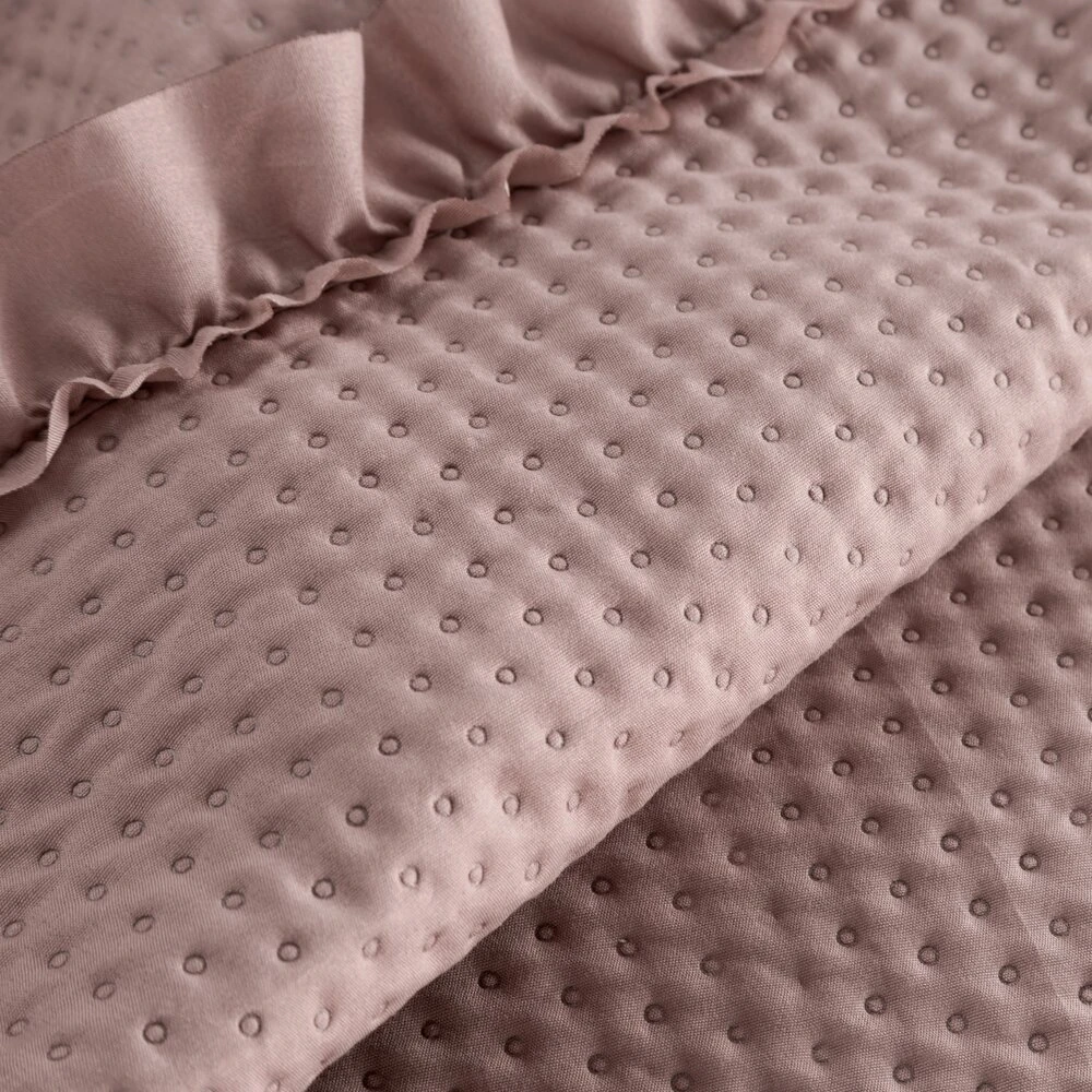 Narzuta na łóżko obszyta dekoracyjną falbanką szerokość: 240 cm, długość: 220 cm, kolor: pudrowy, Skład: 100% poliester
