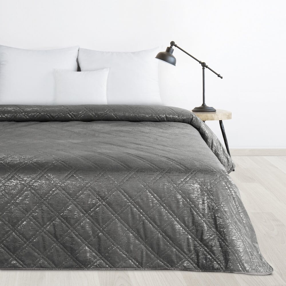 Narzuta welurowa, wykonana metodą hot press ze srebrnym nadrukiem szerokość: 220 cm, długość: 240 cm, kolor: stalowy, Skład: 100% poliester