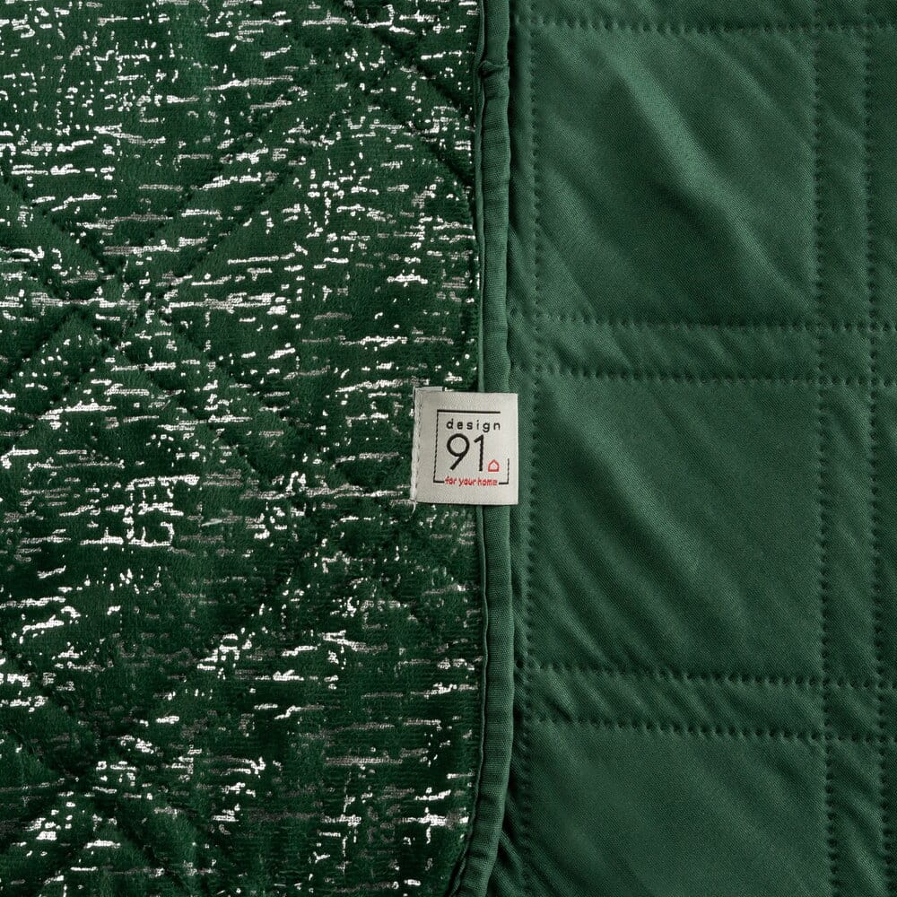 Narzuta welurowa, wykonana metodą hot press ze srebrnym nadrukiem szerokość: 220 cm, długość: 240 cm, kolor: zielony, Skład: 100% poliester