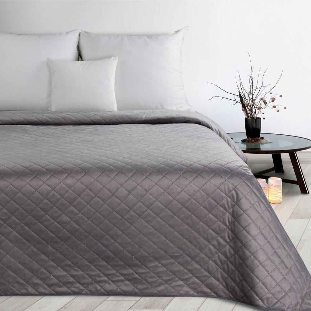 Przyjemna w dotyku narzuta pikowana metodą bezszwowego zgrzewania hotpress w subtelny wzór geometryczny. Sprawdzi się jako narzuta na łóżko lub sofę w salonie. szerokość: 220 cm, długość: 240 cm, kolor: srebrny, Gramatura: 150 GSM, Skład: 100% poliester